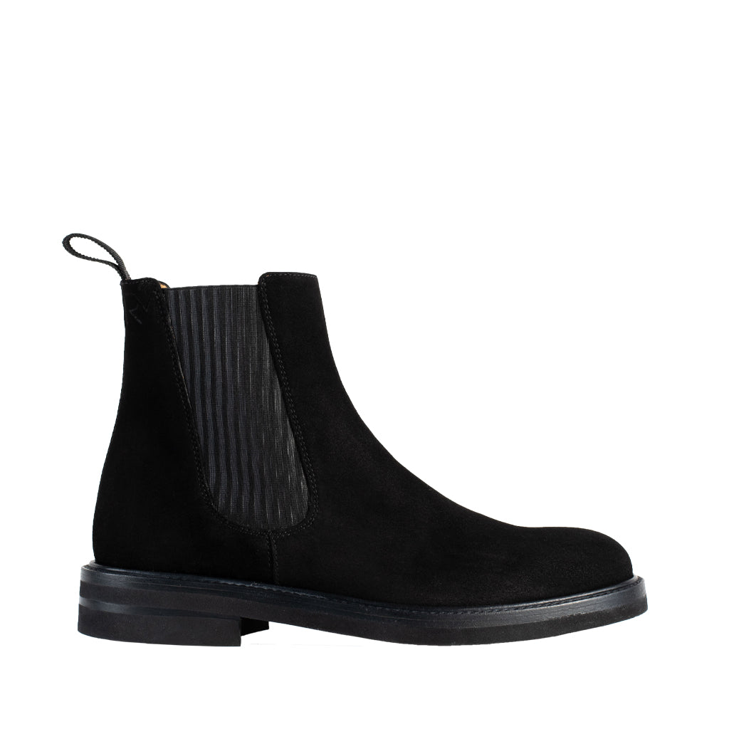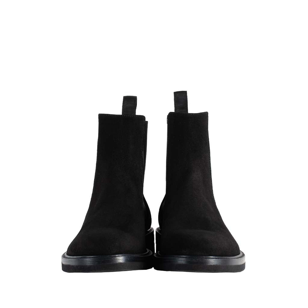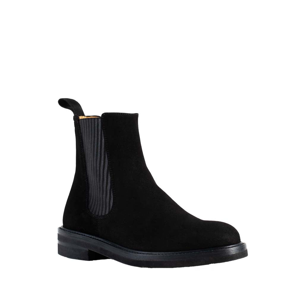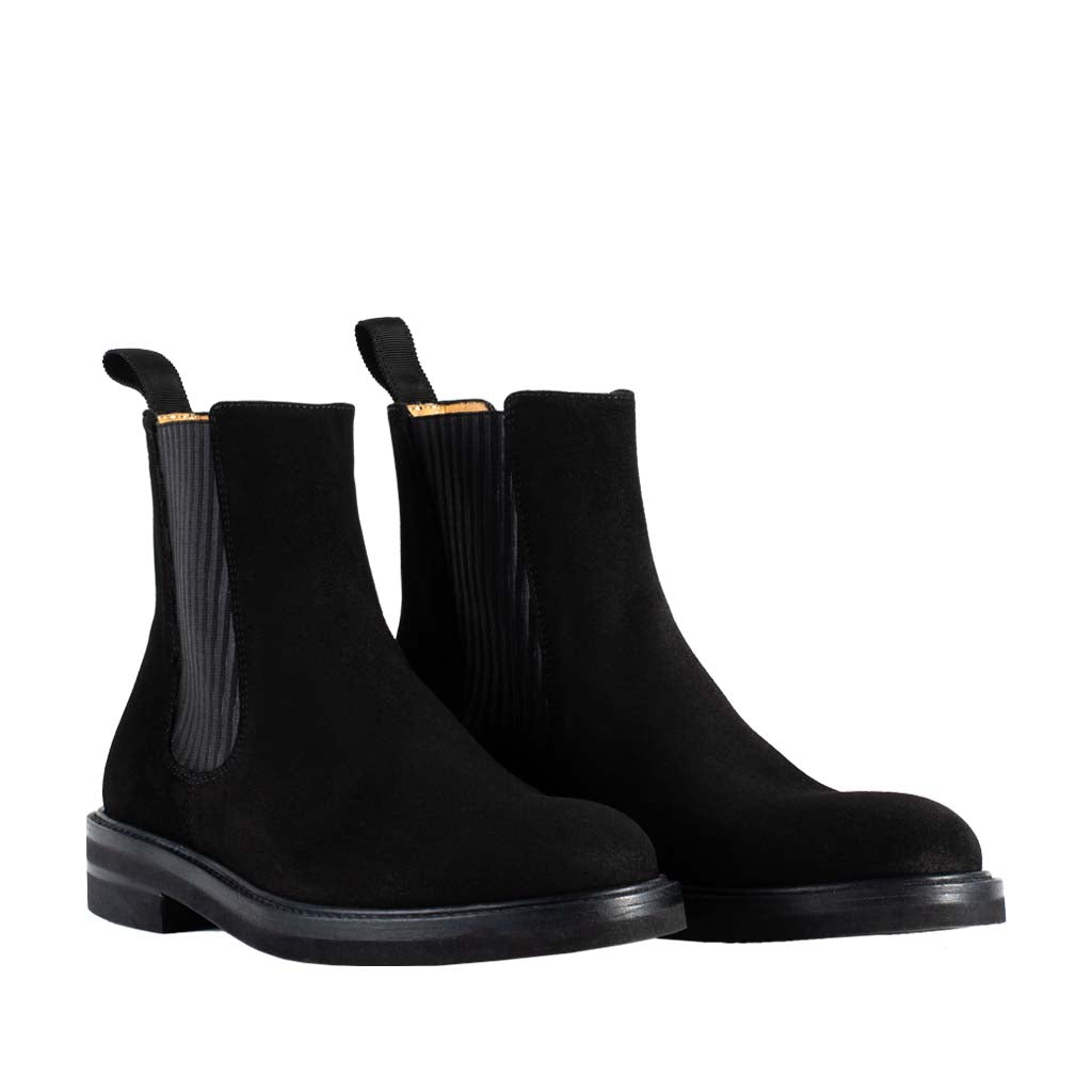 22-60-05-Xx5 is a pair of Chelsea boots made of suede leather crafted by Martegani. Features elastic striped side panel.