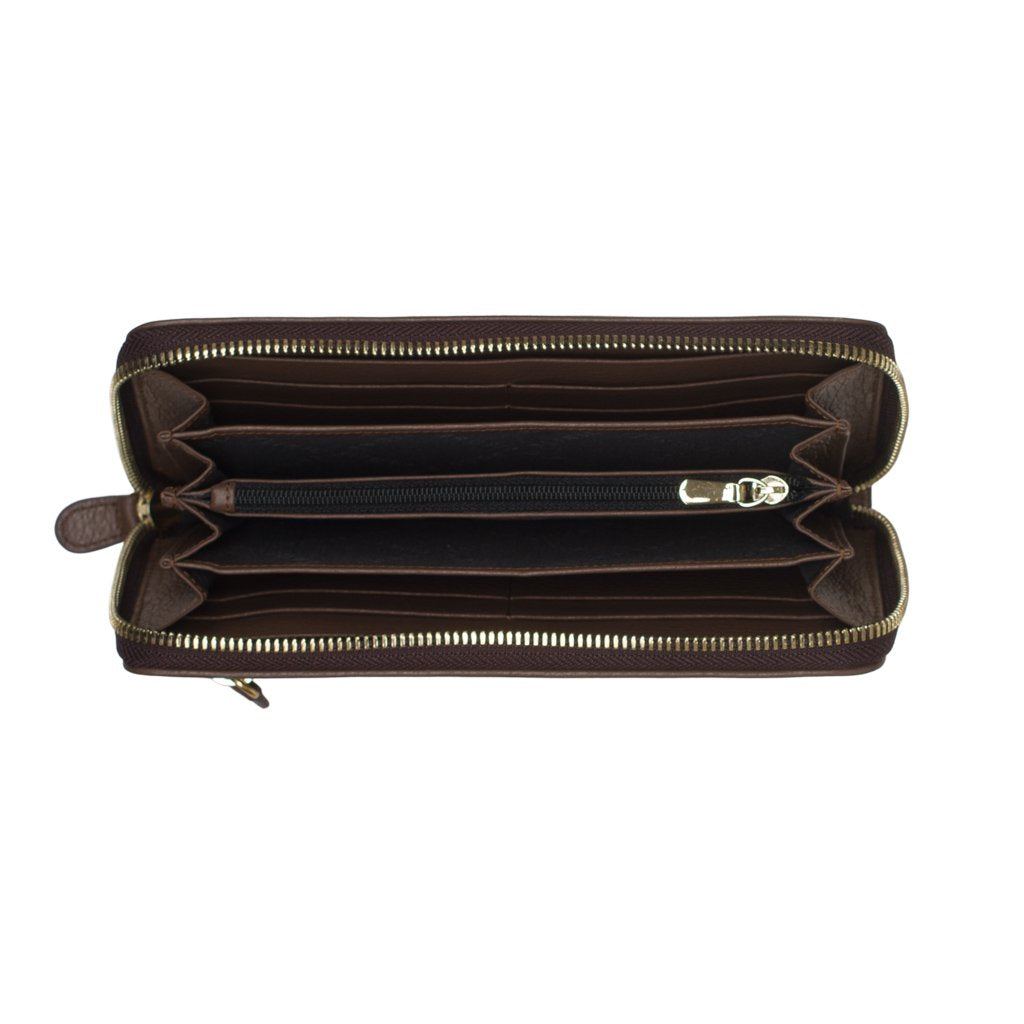 - Gold tone hardware