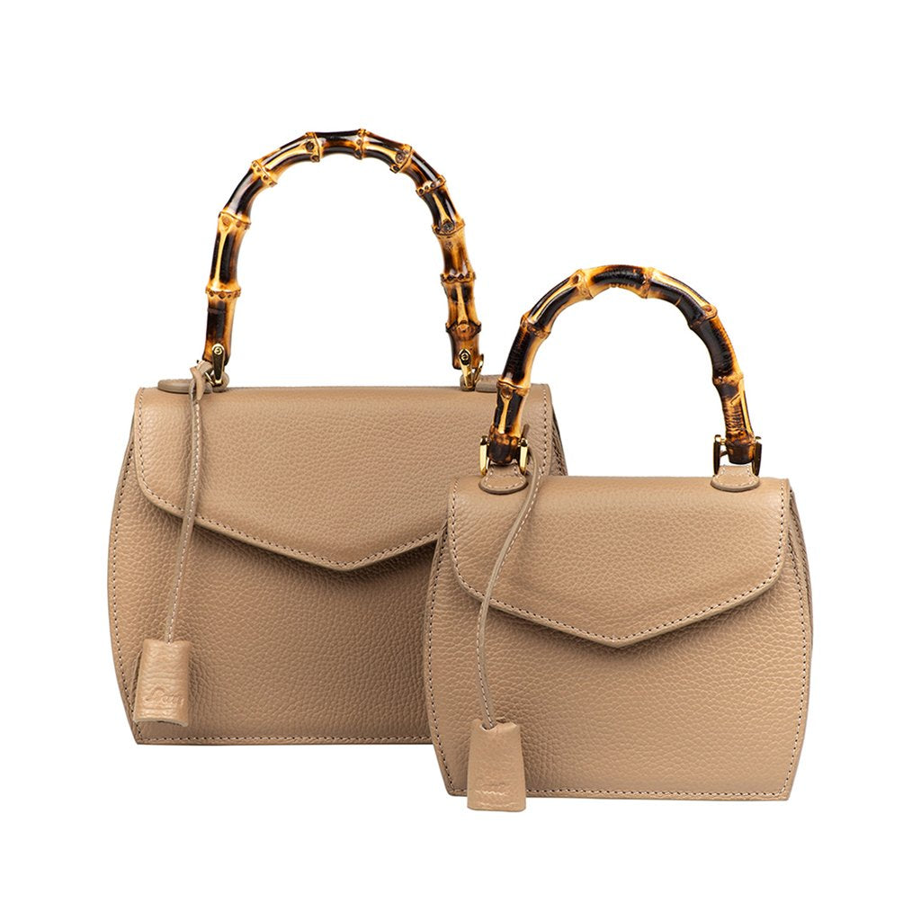 Bella Medium bag is the bigger version of Bella bag. Handmade by Amerigo, the skilles Italian artisan of Buti Pelletterie in Cascine di Buti (Tuscany), features flirtatious and fun curved lines. This purse will showcase the fun and frill in life, dressing up any outfit it is paired with. This top handle handbag is made of high quality calfskin leather and features a solid bamboo top handle attached with metal strap anchors, as well as a matching detachable leather carry strap, which can be attached discretely behind the bamboo top handle. Its suede lined interior contains a back zippered pocket that features the Buti logo, and a front pocket divided from the main compartment by a soft suede partition.- 100% Handmade in Italy