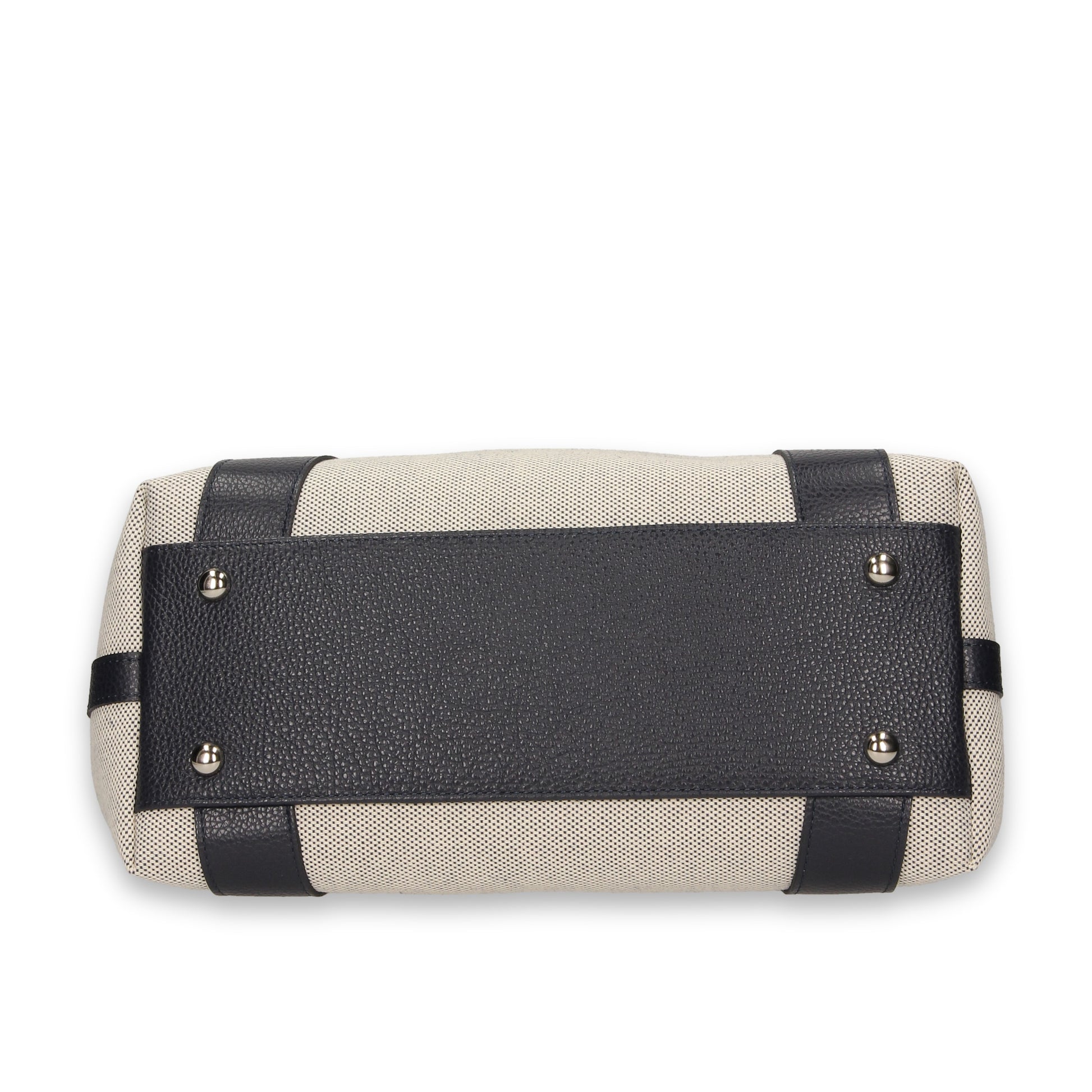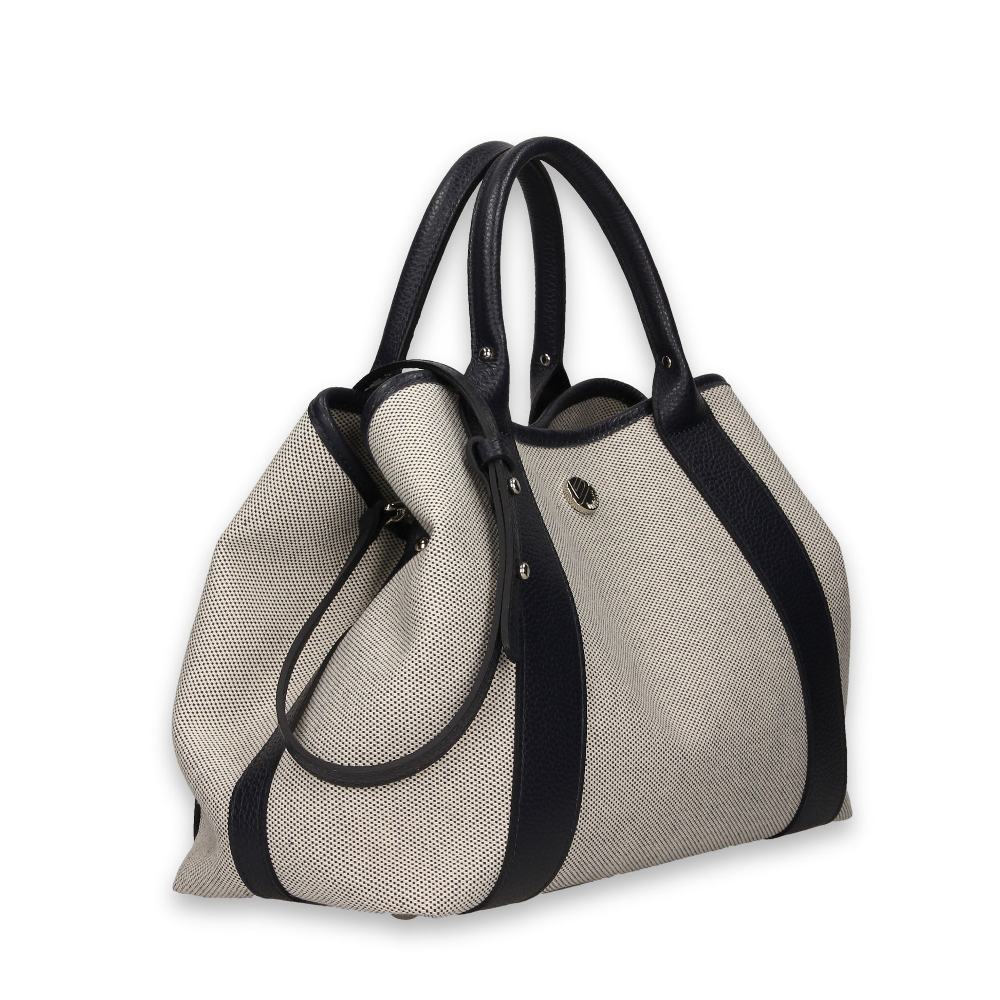 ONDA B is a flared 2- Way bag developed with the traditional Panama cotton canvas and calf leather trimmings- 100% Made in Italy