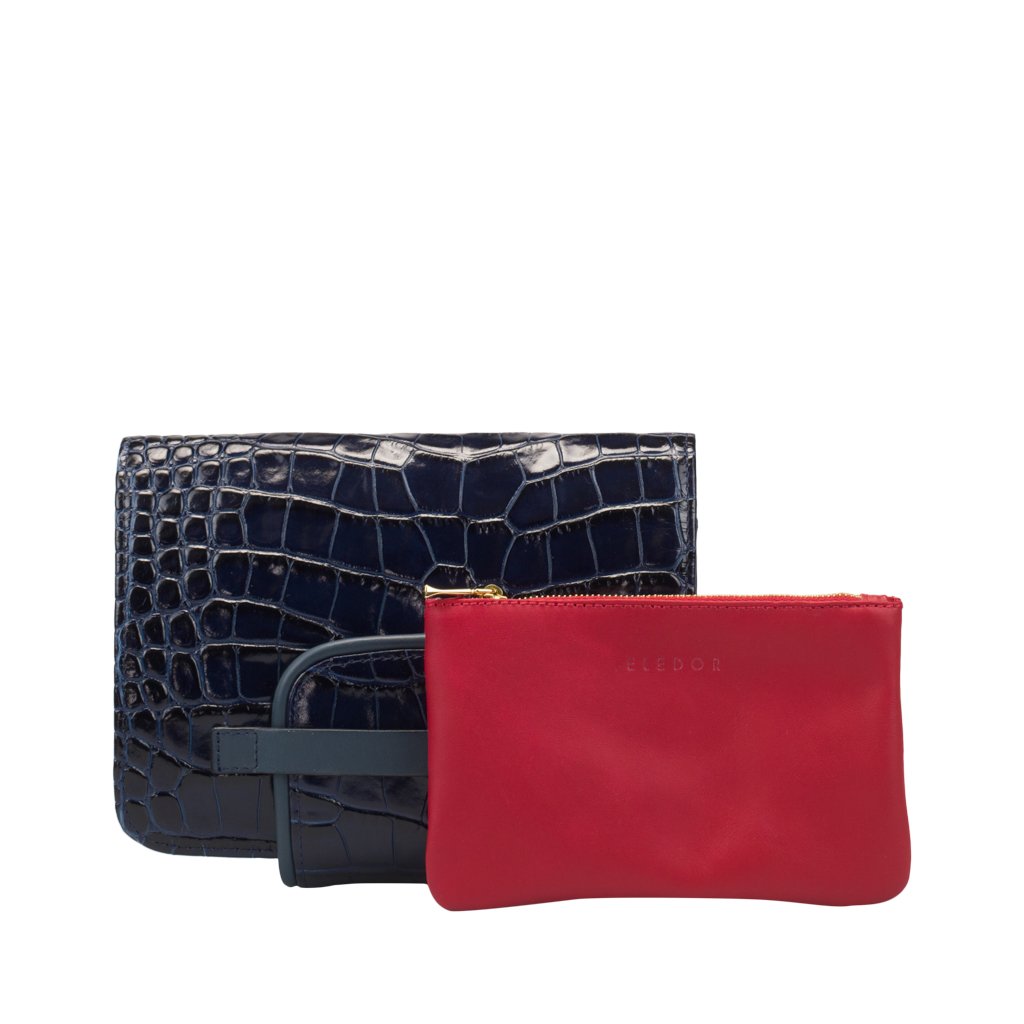Brigida is a bag crafted by ELEDOR in Padua, Veneto. Made of croc-embossed bovine leather, this clutch bag comes with multiple internal pockets and an attachable leather strap. Boasting a detachable interior zipper compartment, Brigida is a functional yet fashionable clutch.