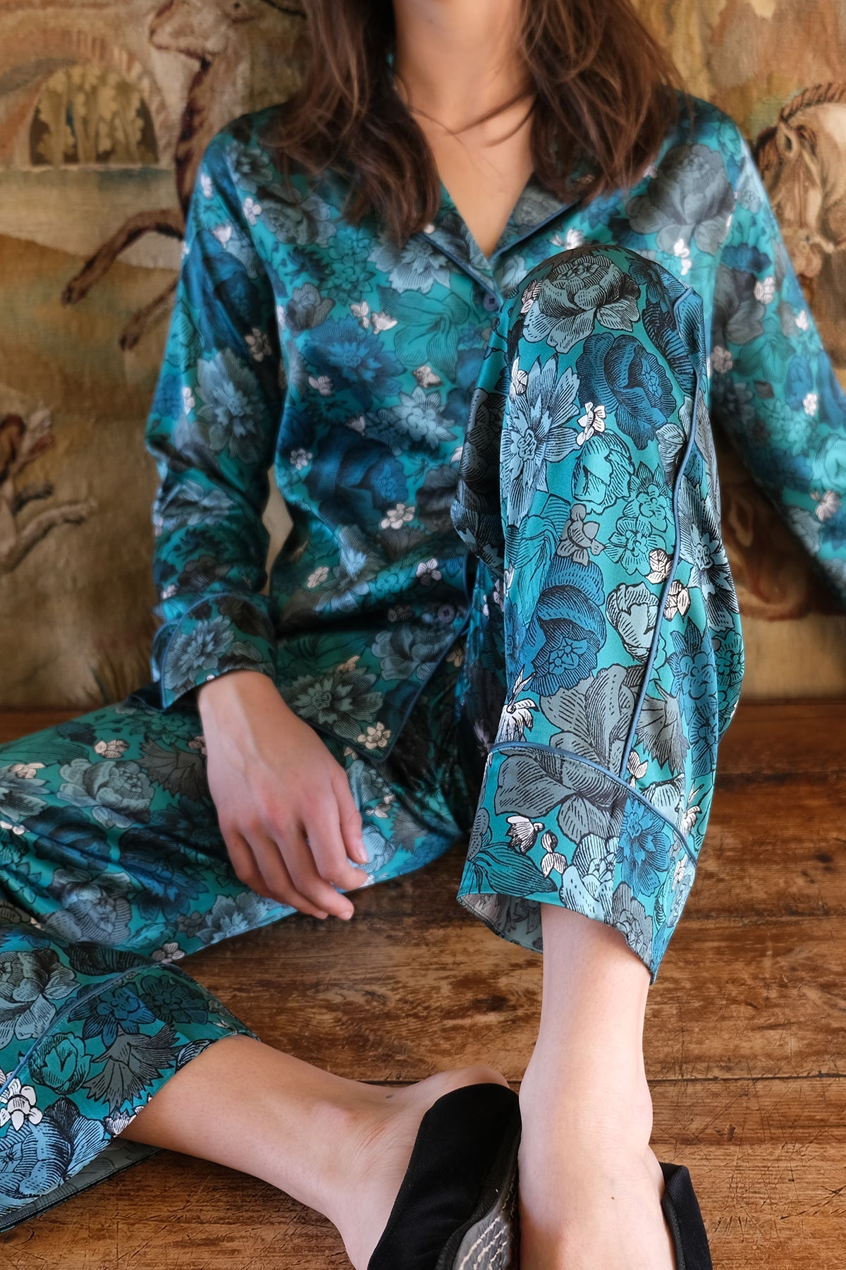 Colette S23P21P is a pajama made of silk crafted by Morpho + Luna.