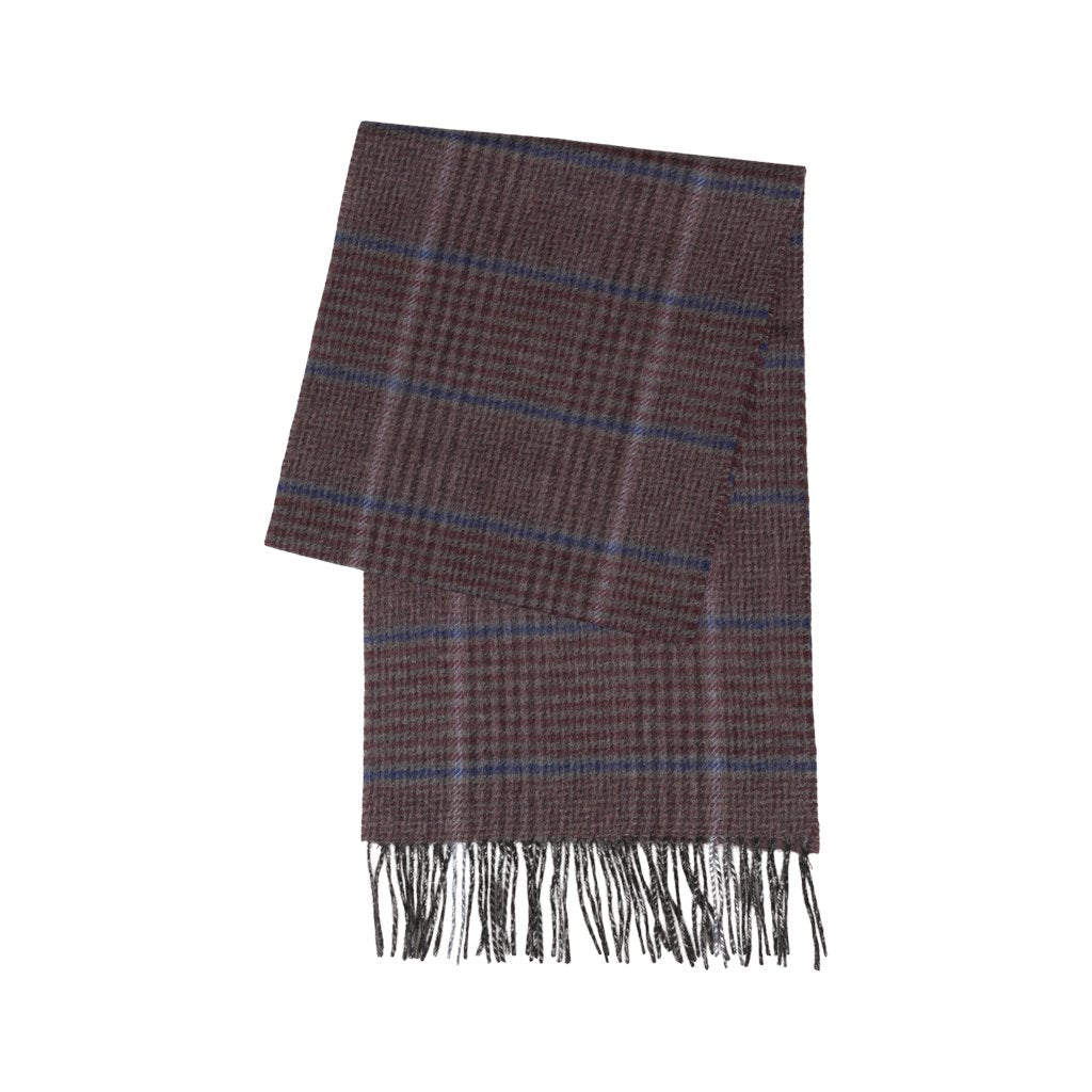 Corvara is a scarf handcrafted by the expert artisans of Doria & Dojola in Biella, Piedmont. Featuring a light burgundy and grey plaid pattern, Corvara is a scarf made of cashmere to ensure a soft feel against the skin. This scarf is finished with classic fringing, perfect to be wrapped around your favorite coats.