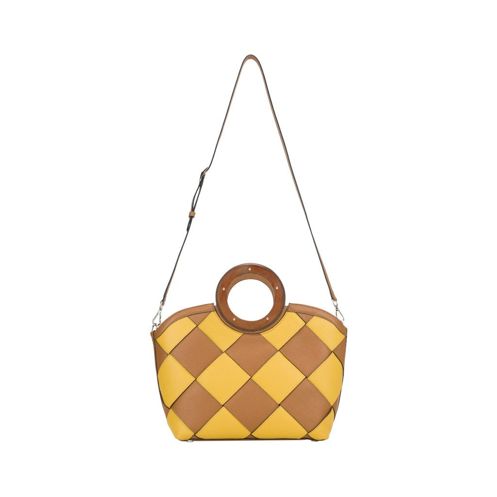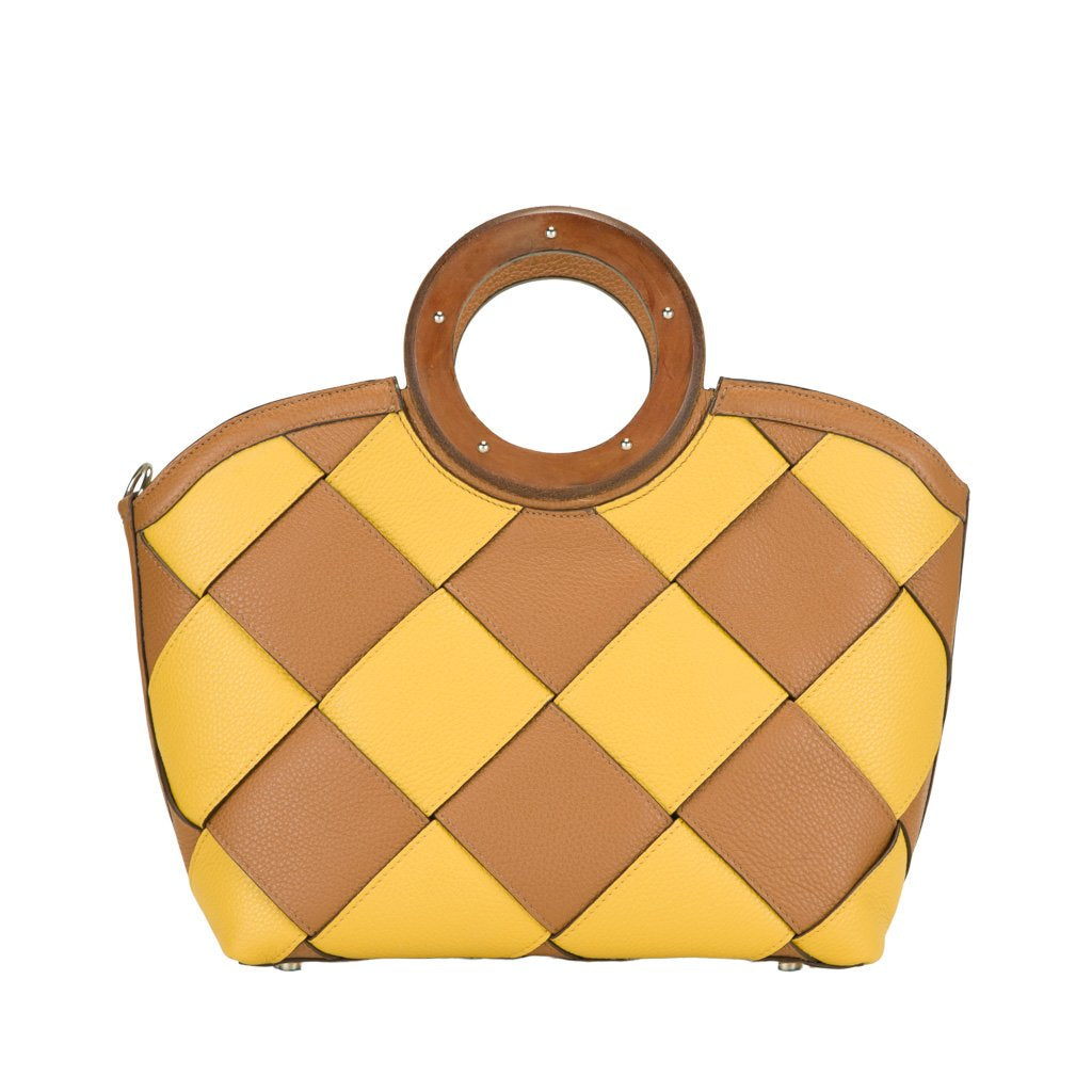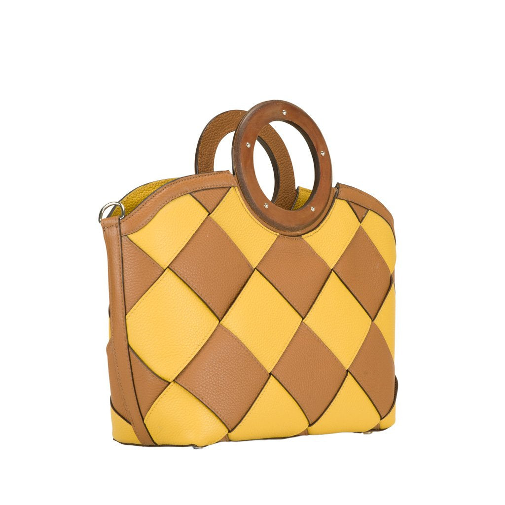 Diamante is an elk-embossed calfskin top handle bag crafted by the expert artisans of Buti in Tuscany. With its colorful checkered pattern and vegetable leather handles, this bag is perfect for the practical fashion enthusiast who gets bored easily. Use the detachable strap to transform Diamante into a crossbody bag.