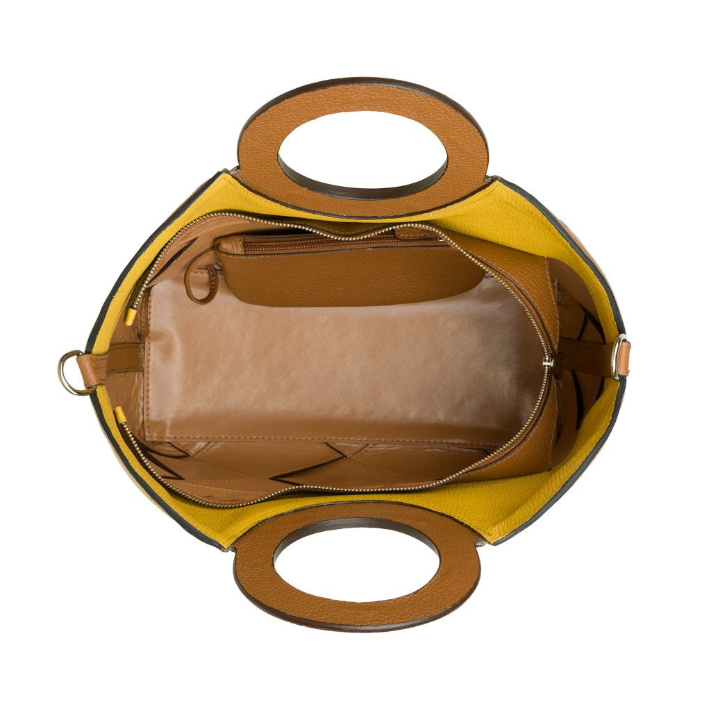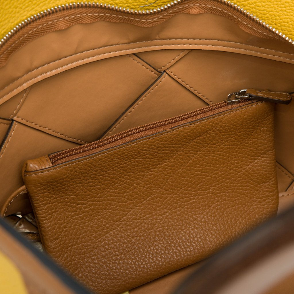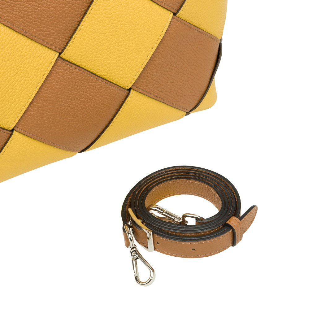 Diamante is an elk-embossed calfskin top handle bag crafted by the expert artisans of Buti in Tuscany. With its colorful checkered pattern and vegetable leather handles, this bag is perfect for the practical fashion enthusiast who gets bored easily. Use the detachable strap to transform Diamante into a crossbody bag.