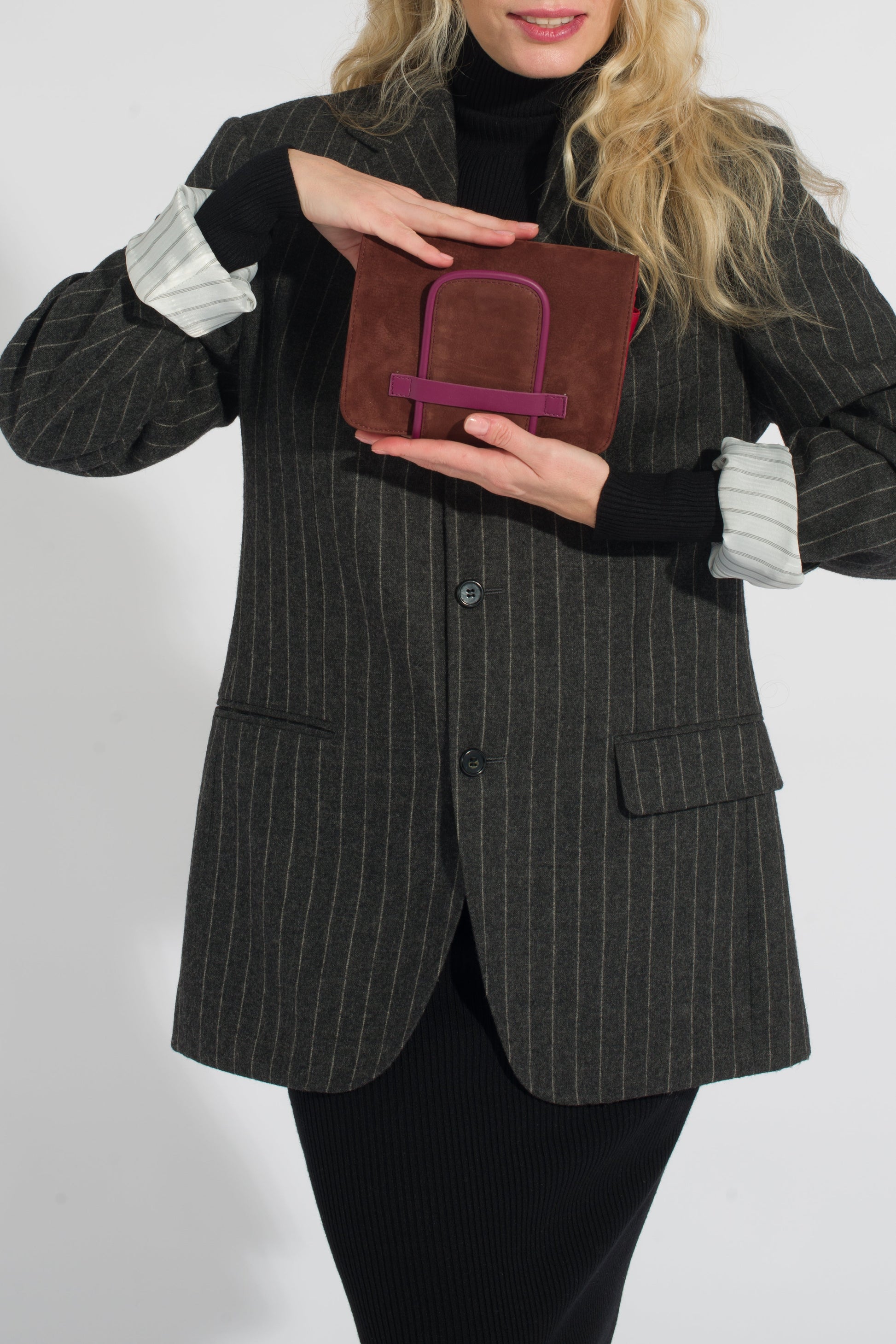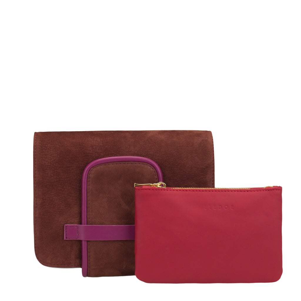 Egidia is a bag crafted by ELEDOR in Padua, Veneto. Made of nubuck leather, this clutch bag comes with multiple internal pockets and an attachable leather strap. Boasting a detachable interior zipper compartment and color contrast details, Egidia is a functional yet fashionable clutch.
