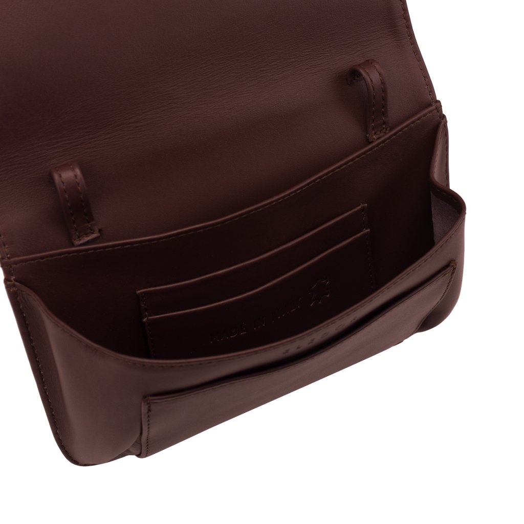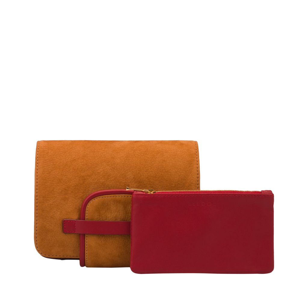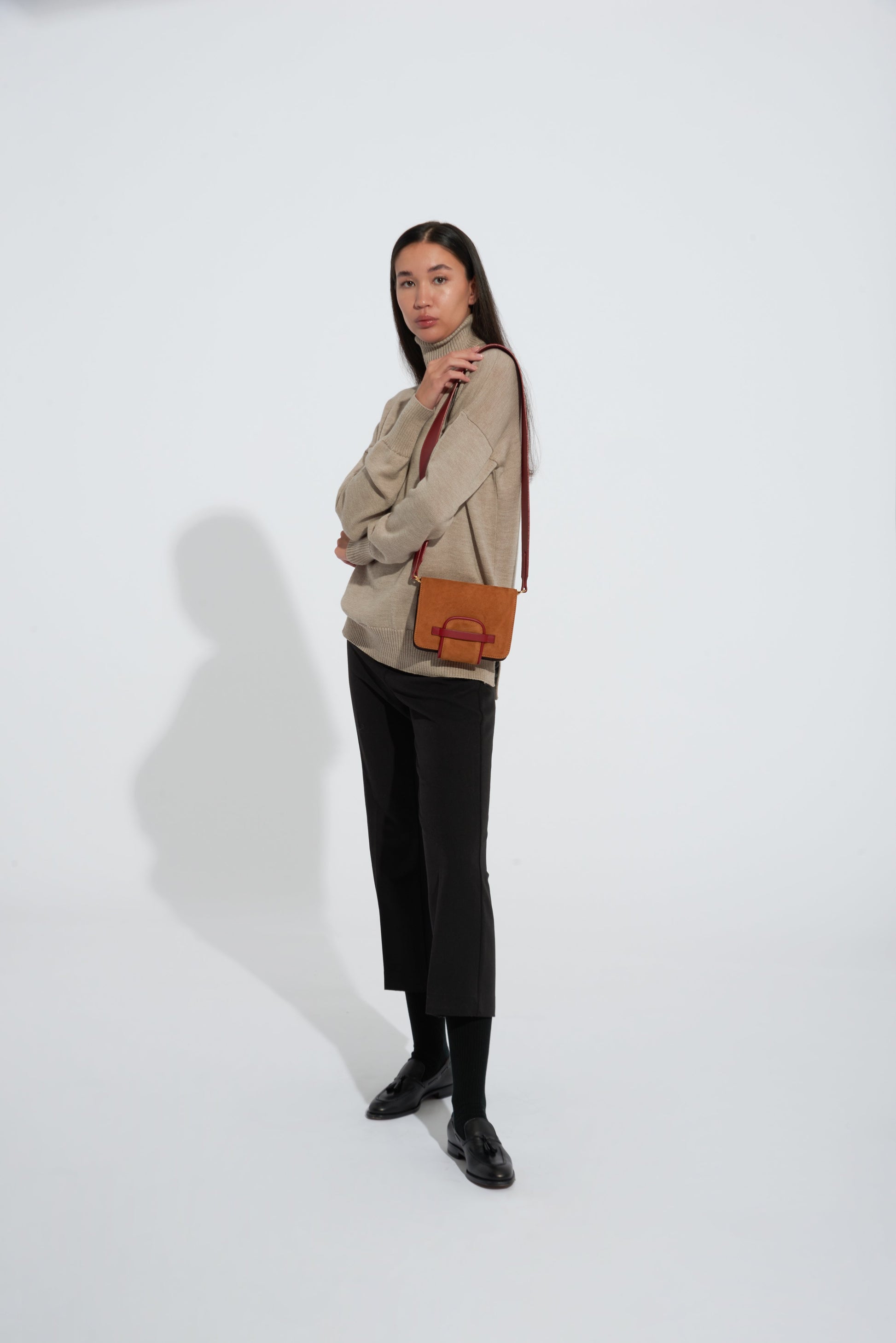 Egidia is a bag crafted by ELEDOR in Padua, Veneto. Made of nubuck leather, this clutch bag comes with multiple internal pockets and an attachable leather strap. Boasting a detachable interior zipper compartment and color contrast details, Egidia is a functional yet fashionable clutch.