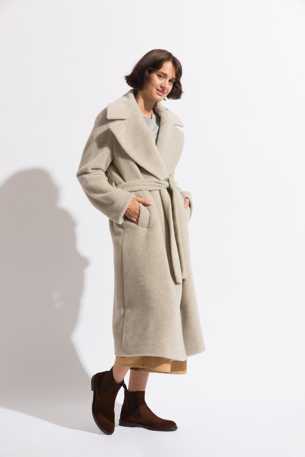 Elaia is a winter coat crafted by Caban. Combining different wools for a luxurious finish, is the perfect piece to stay cosy and warm during the cooler months of the year. Classically styled with a wide collar, back vent and traditional waist belt, Elaia will invite head-turns and envy.