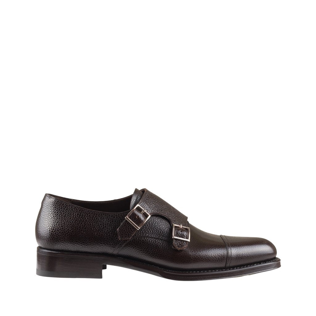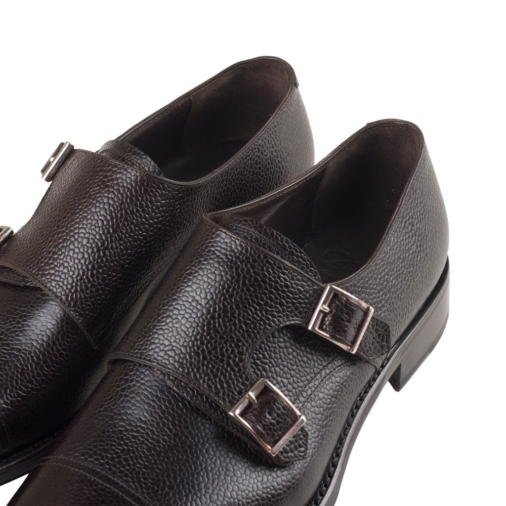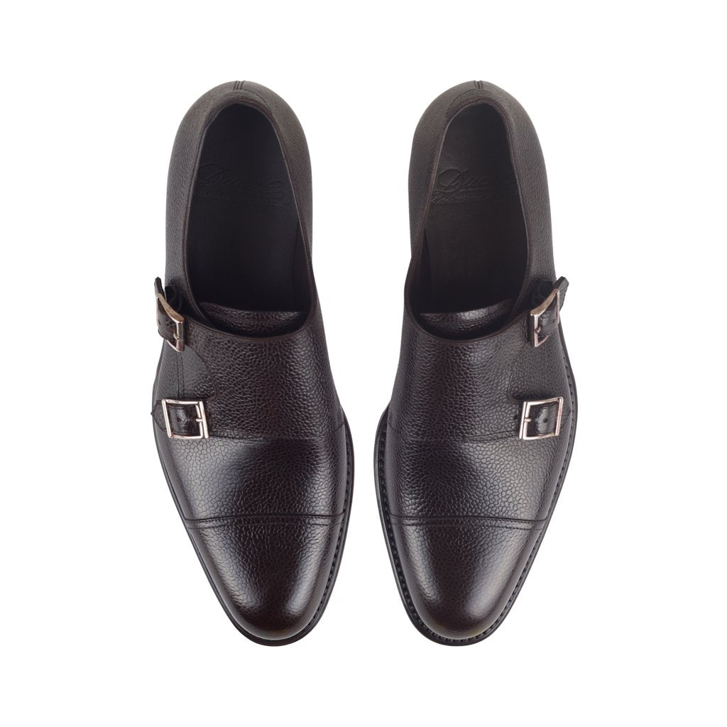 Emilio is a classic monk shoes handcrafted by Ducal in Florence, Tuscany. The upper is in printed calfskin with a classic glossy grain, with a double buckle and lining in soft calfskin. The double leather sole features a Goodyear construction with hand-stitched welt. The shape with a slightly rounded tip, the material and the heavy sole make it a very versatile shoe, suitable for wearing even with an informal look. The Goodyear construction, which combines quality and comfort, also makes it possible to replace the sole, guaranteeing the shoe a long life.