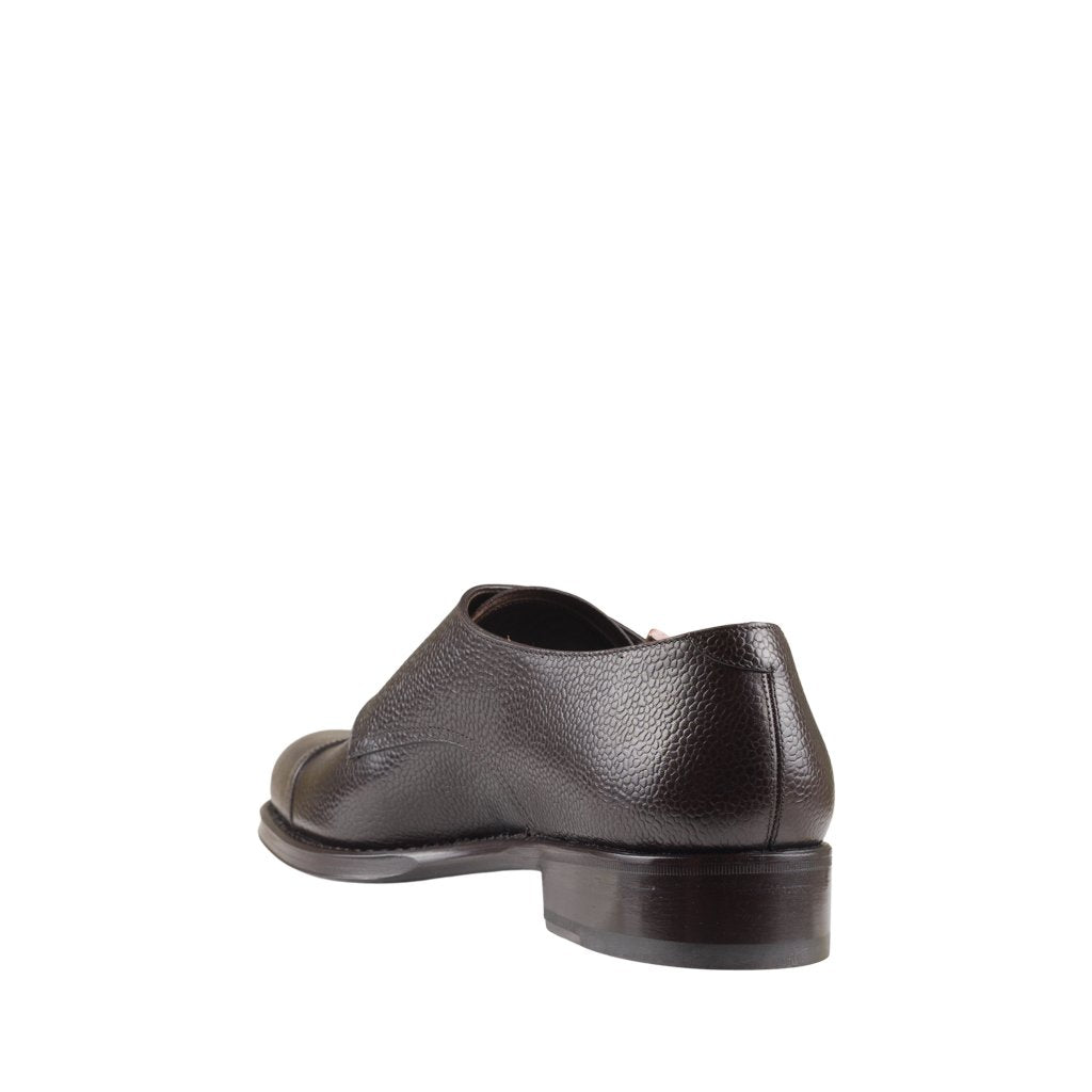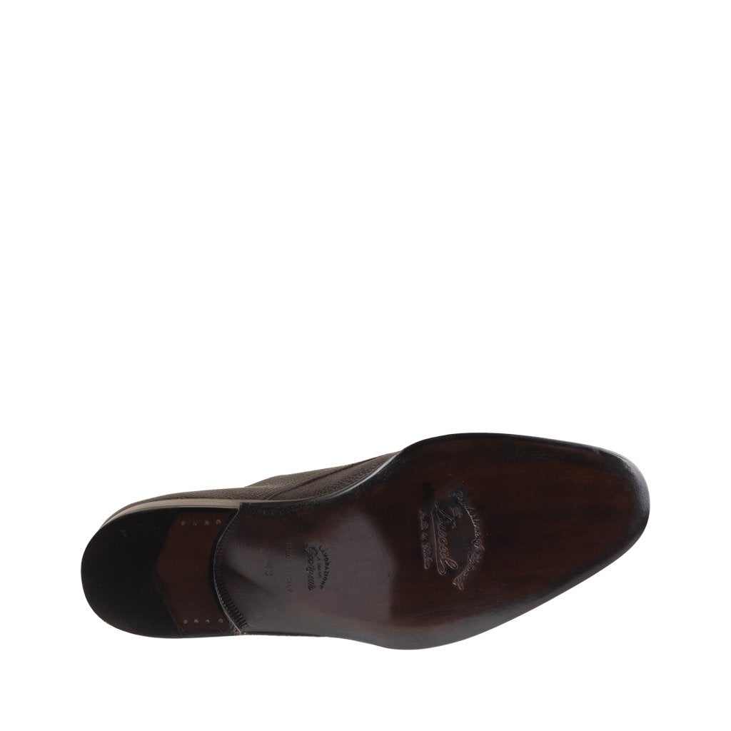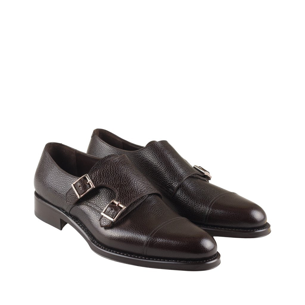 Emilio is a classic monk shoes handcrafted by Ducal in Florence, Tuscany. The upper is in printed calfskin with a classic glossy grain, with a double buckle and lining in soft calfskin. The double leather sole features a Goodyear construction with hand-stitched welt. The shape with a slightly rounded tip, the material and the heavy sole make it a very versatile shoe, suitable for wearing even with an informal look. The Goodyear construction, which combines quality and comfort, also makes it possible to replace the sole, guaranteeing the shoe a long life.