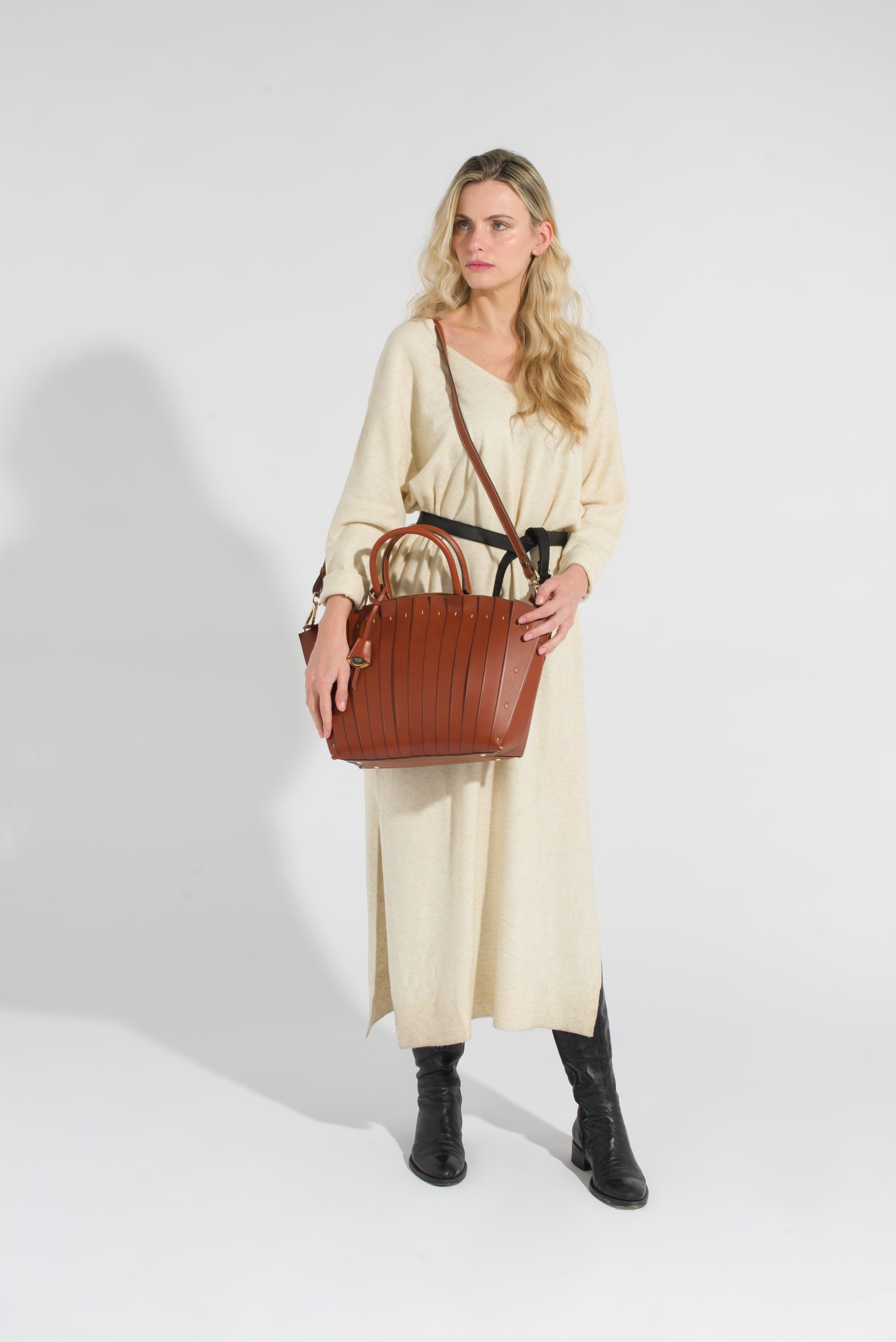Ermione is a tote bag crafted by Boldrini Selleria. Made of Vachetta leather and featuring a detachable adjustable shoulder strap.