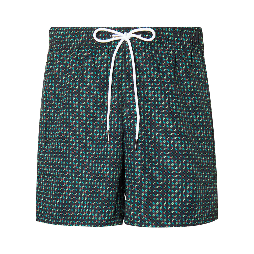 Fantasia is a pair of swim shorts crafted by Nick Bronson. These drawstring shorts are made of 100% polyester, rendering them both soft and long-lasting. With its playful pattern and deep green color, Fantasia will become your go-to swimsuit for the summer.