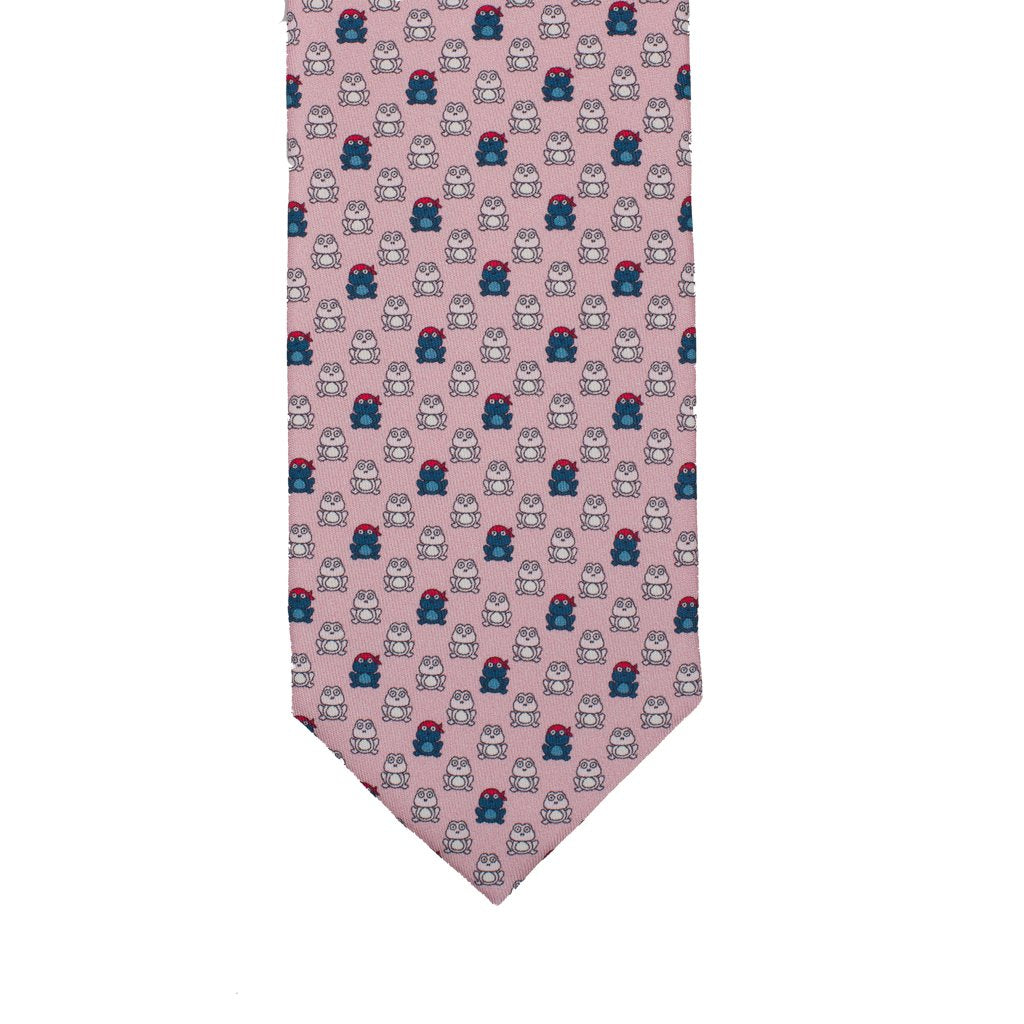 Flavio is a tie handcrafted by Ettore Cavazza in Como, Lombardy. This hand-sewn silk twill tie features an all-over frog pattern. Flavio is a high-quality and super durable accessory that can easly fit in your daily wardrobe.