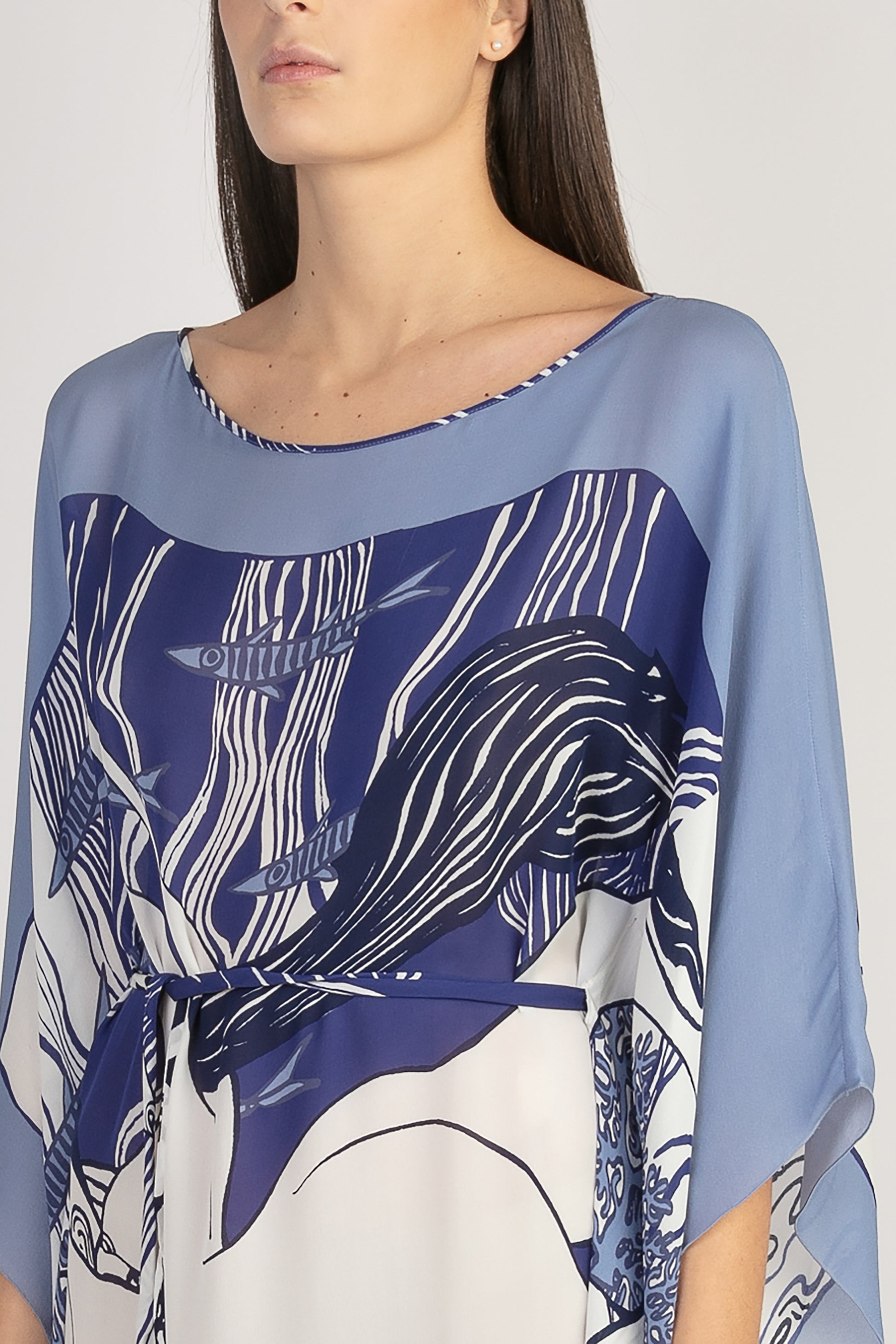Fondo Mar Maxi Caftano is a caftan made of silk crafted by Sans Tabù.