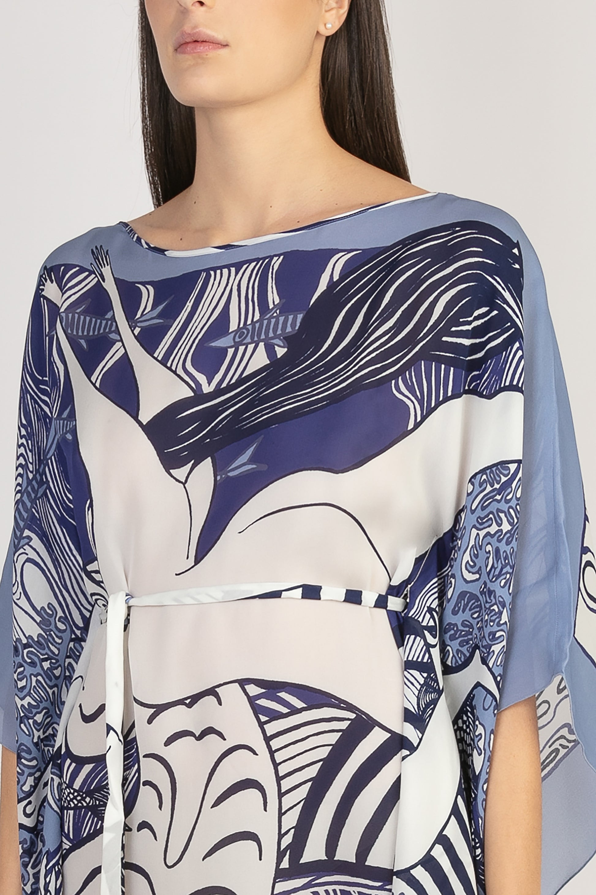 Fondo Mar Mini Caftano is a caftan made of silk crafted by Sans Tabù.