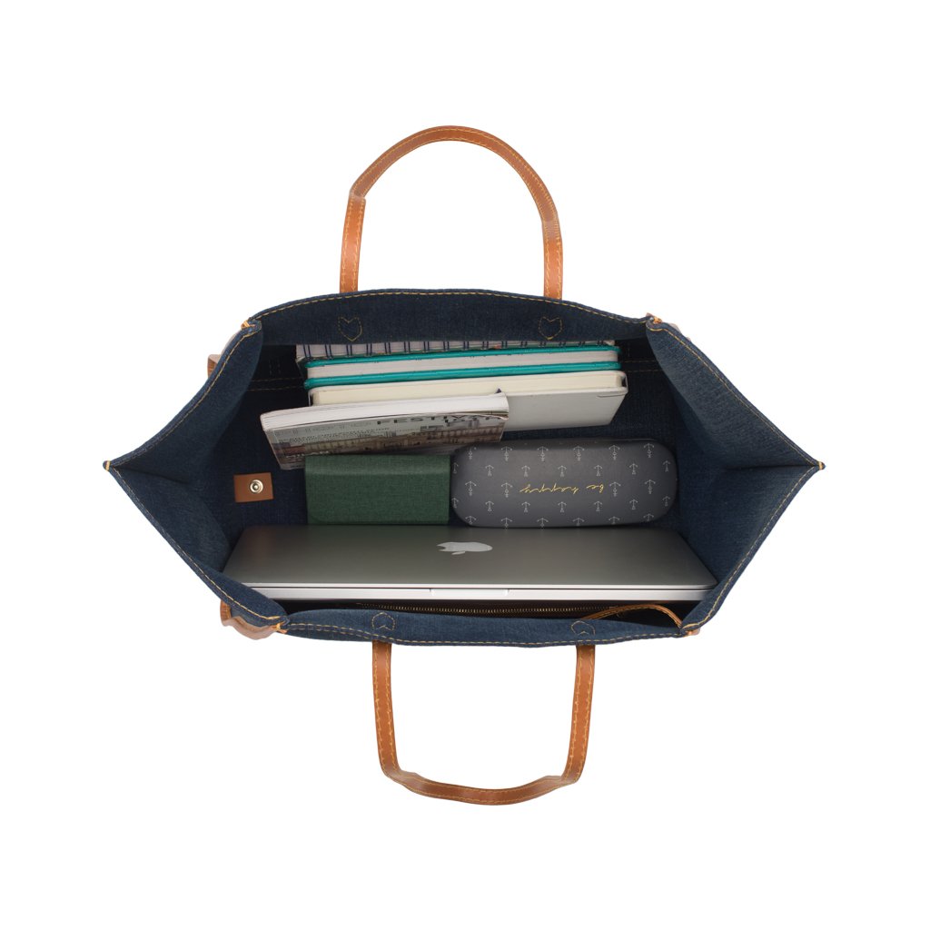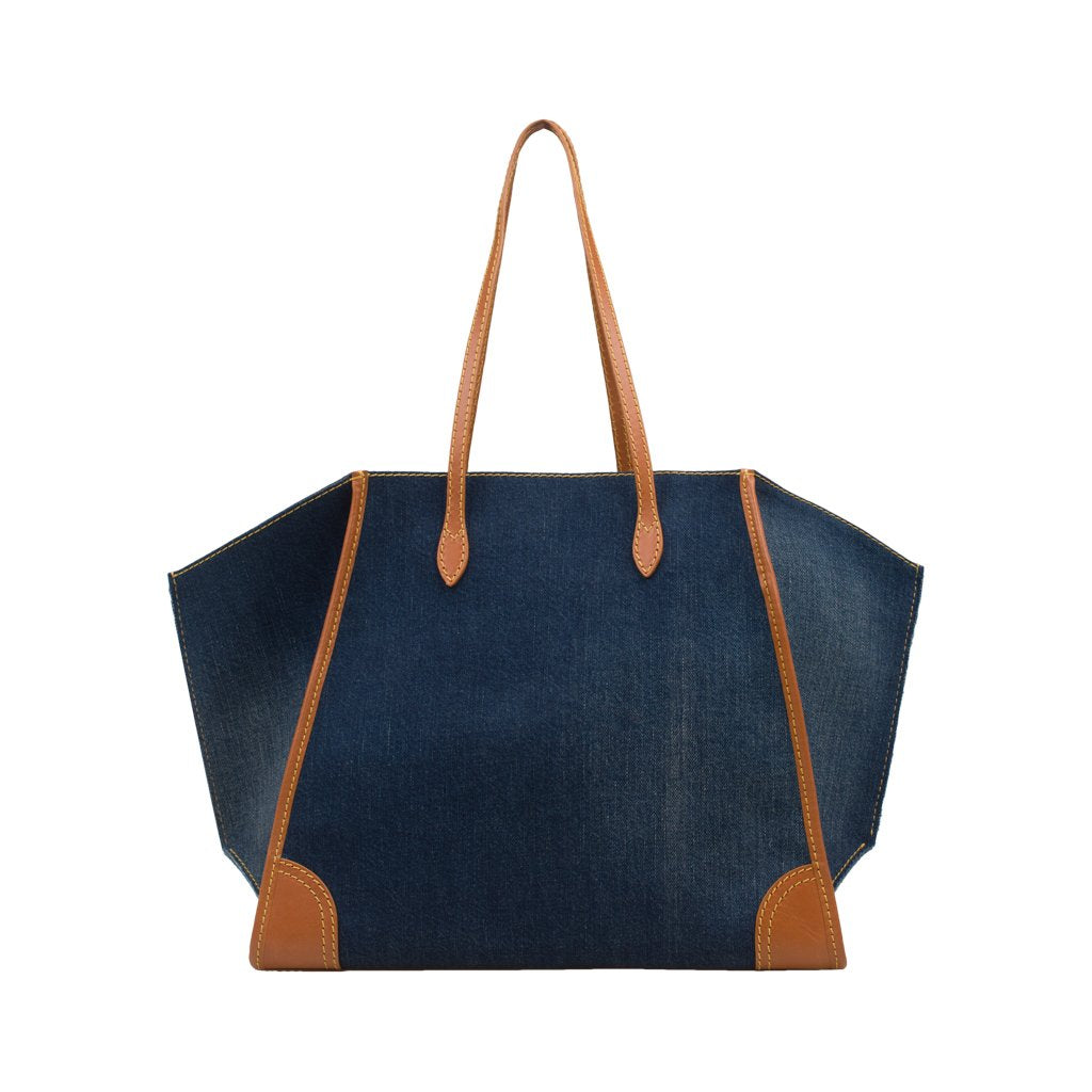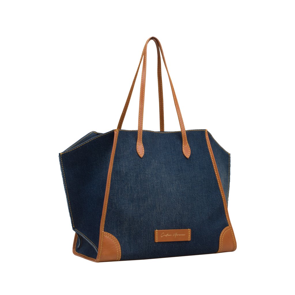 Gemma is a tote bag crafted by Cristian Marcucci. Made of cotton denim with calfskin details, Gemma boasts a super spacious lined interior and soft exterior. The perfect on-the-go tote, it's equipped with a detachable drawstring compartment and also a zipper pouch where you can keep your valuables.