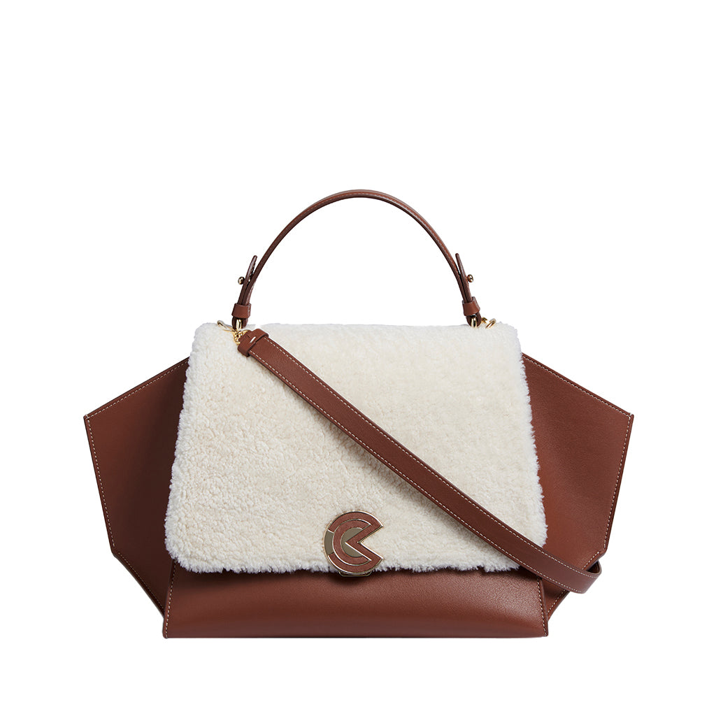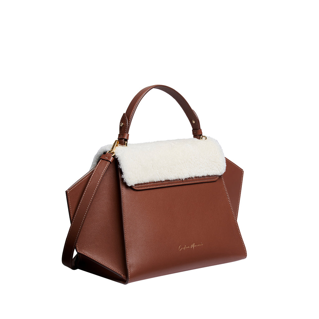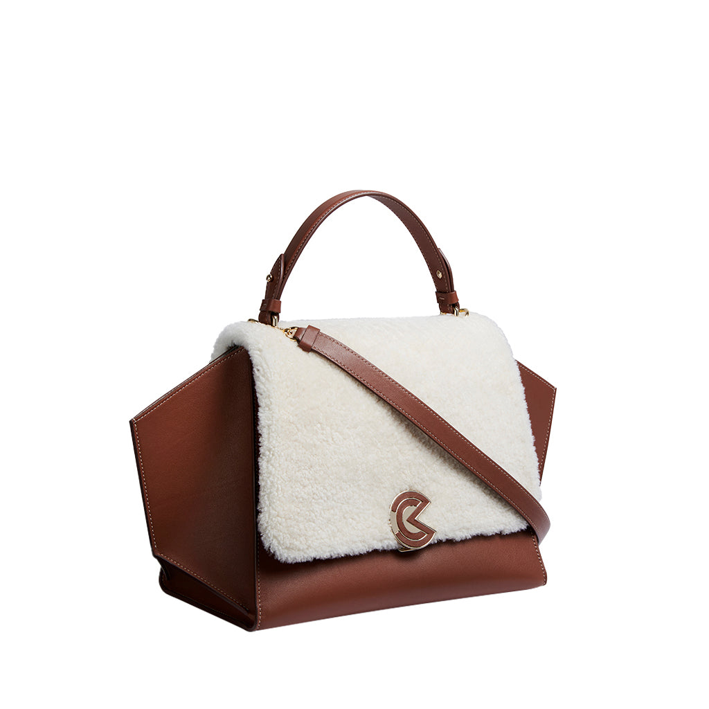 Gemma Mini is a top handle bag made of leather and shearling crafted by Marcucci.