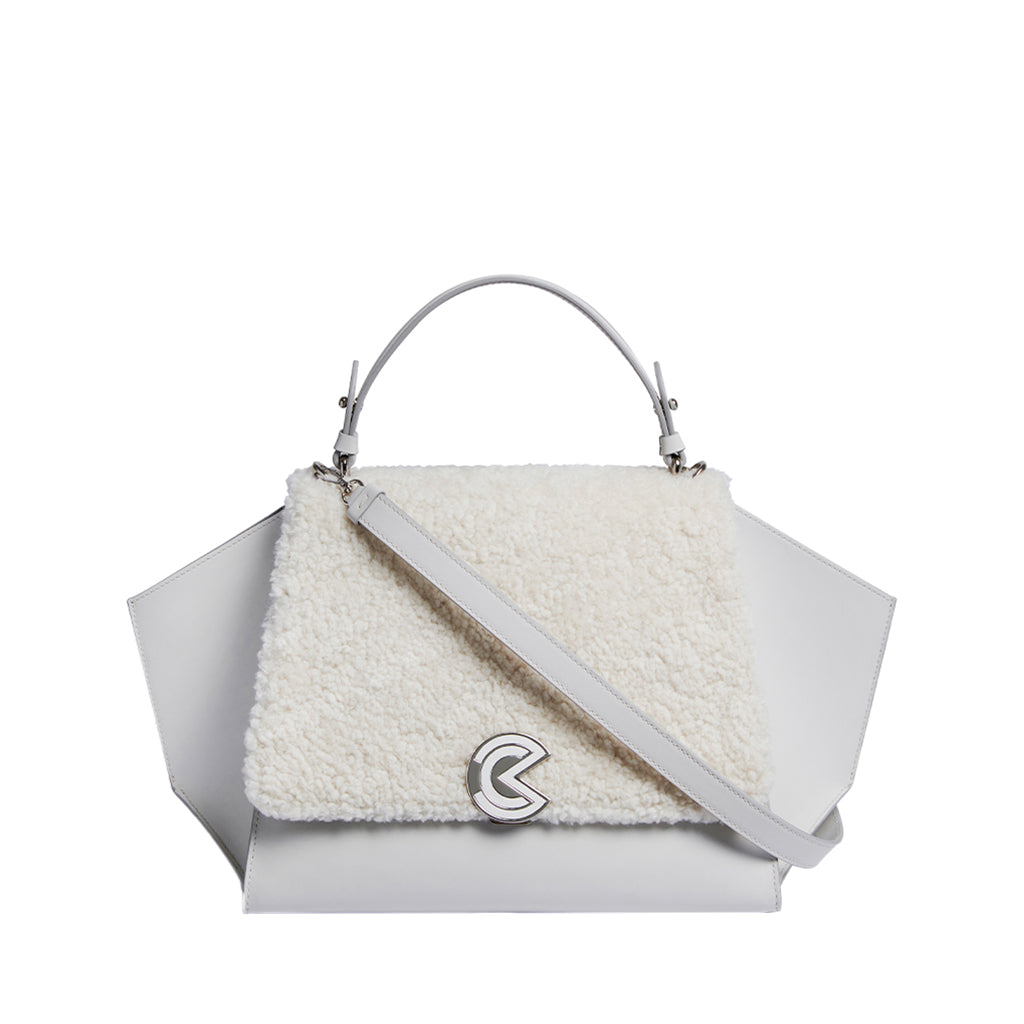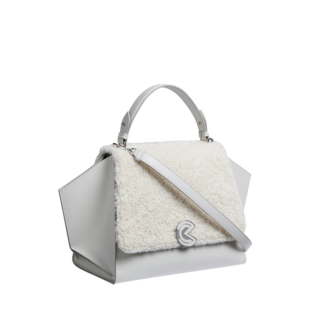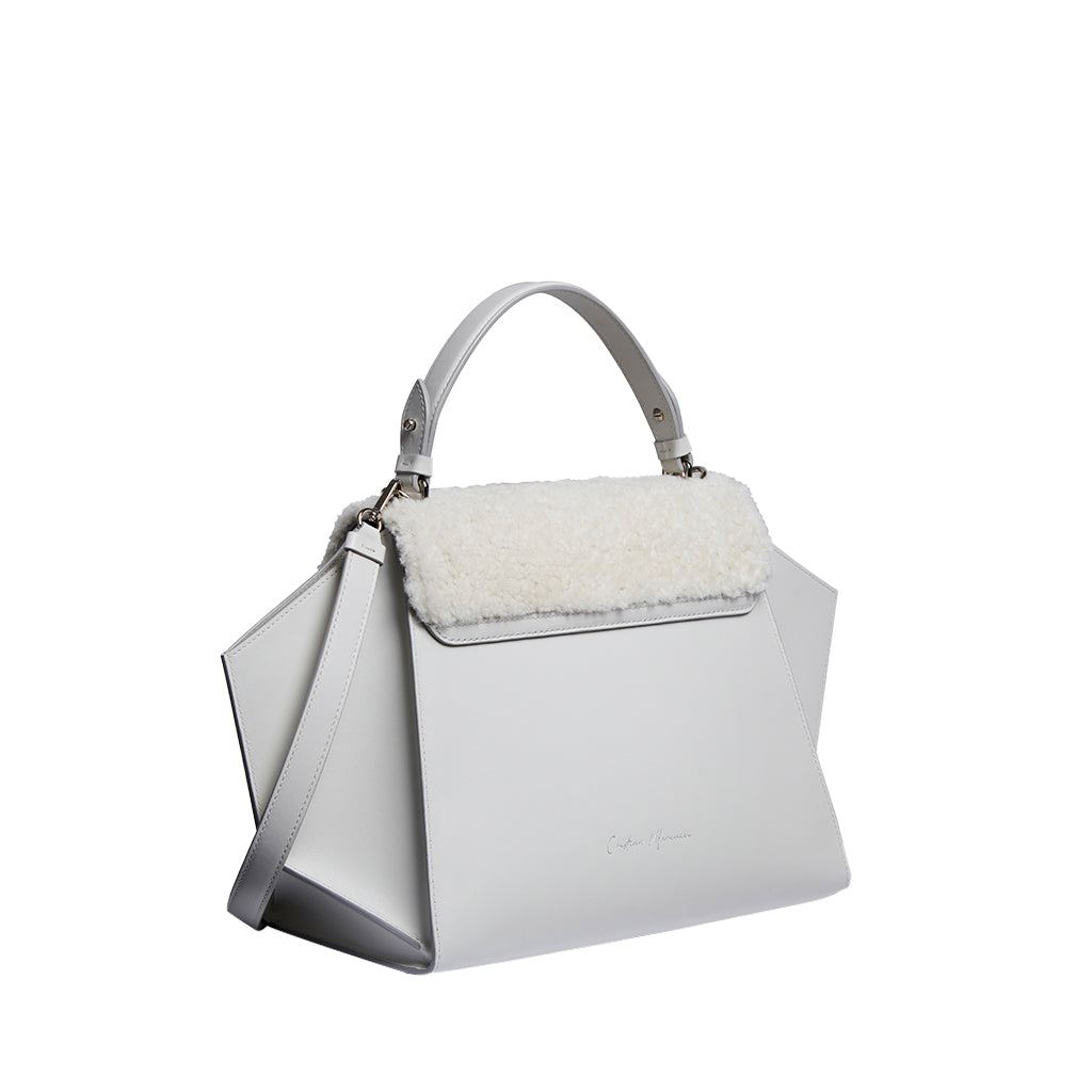 Gemma Mini is a top handle bag made of leather and shearling crafted by Marcucci.