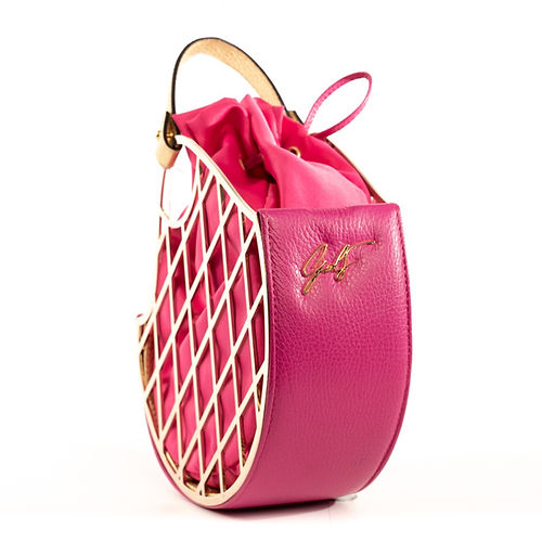 HADMADE WITH GOLD-COLORED METAL,FUCHSIA SIDE CALFSKIN,STEEL BRAND LOGO, INTERNAL LINING. MILANO BAG CREATED TO MAKE A UNIQUE STYLE.- Made in Italy