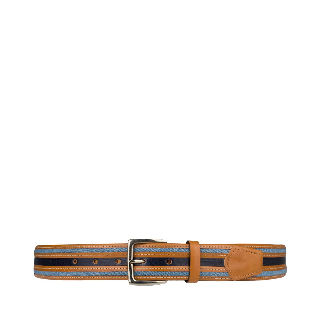 Glauco is a belt crafted by Stefano Corsini in Trapani, Sicily. Made of luxurious leather and detailed with denim inserts, Glauco will stand the test of time and style.