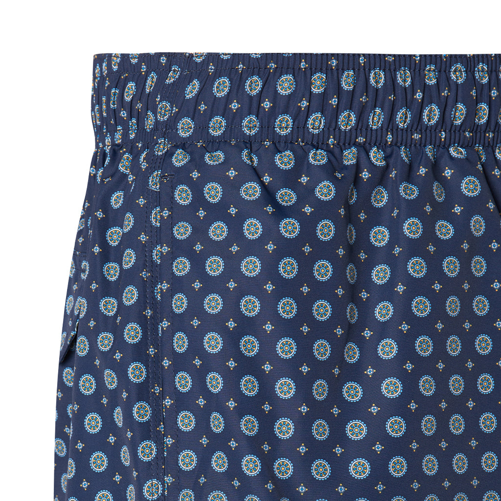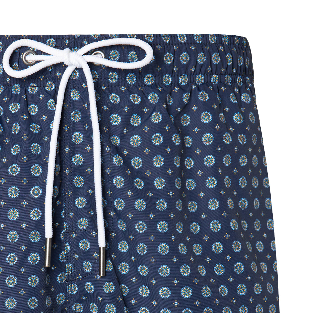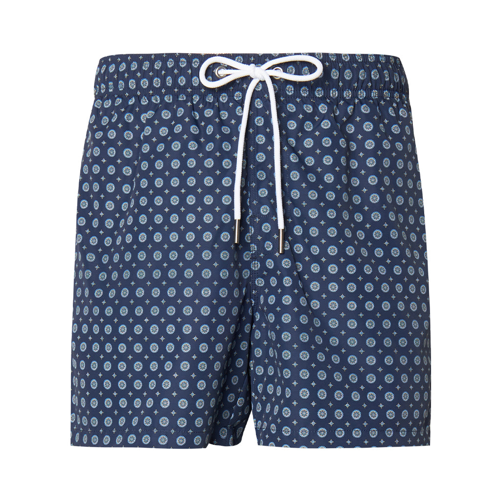 Gotico is a pair of swim shorts crafted by Nick Bronson. These drawstring shorts are made of 100% polyester, rendering them both soft and long-lasting. With its playful pattern and deep blue color, Gotico will become your go-to swimsuit for the summer.