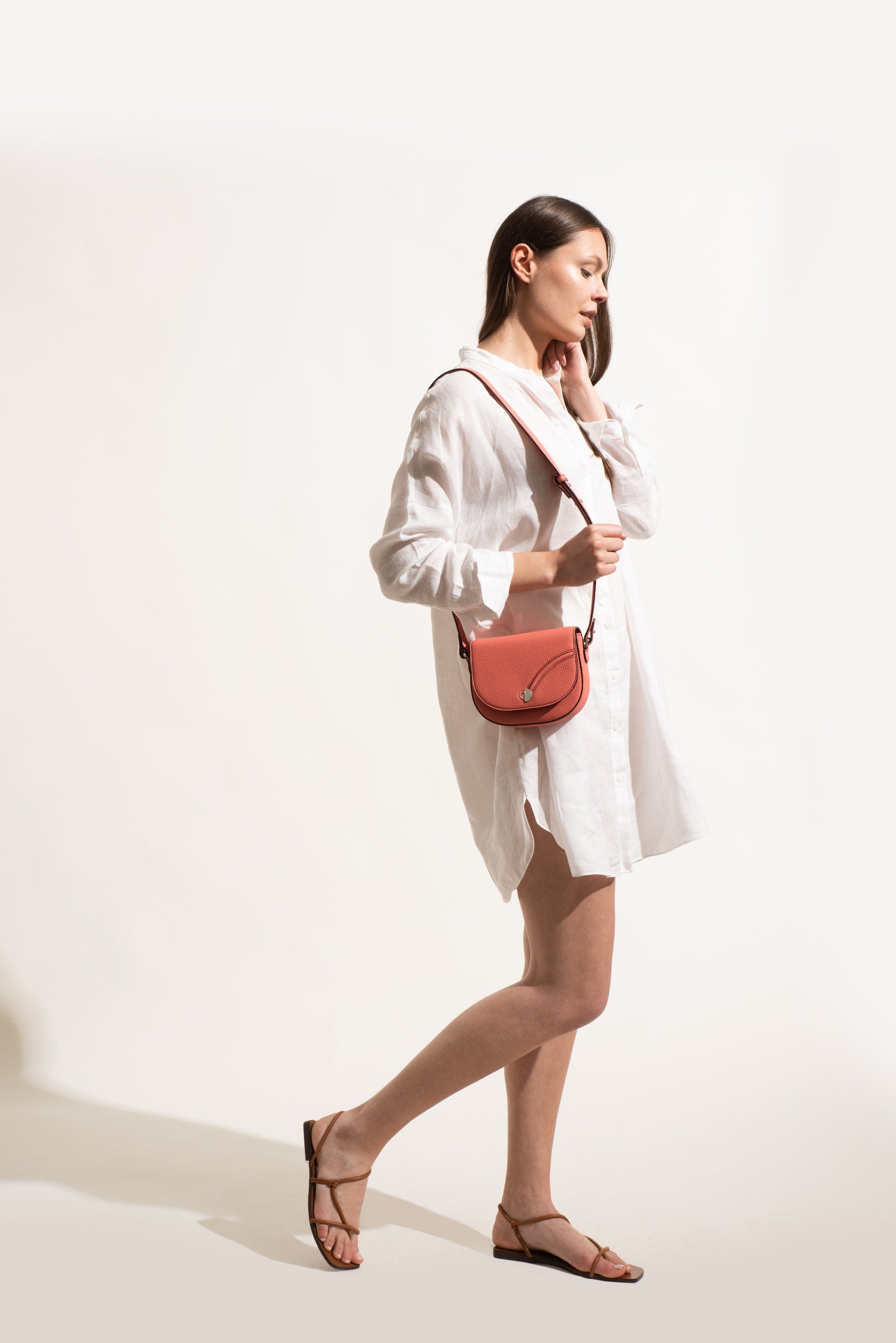 Ippolita is a crossbody bag crafted by Chiara Daverio in Milan, Lombardy. Compact yet very chic, Ippolita's flap opening allows easy access to your essentials while keeping them secure. Its lightweight structure is thanks to innovative leather tanning and production techniques. Wear this elegant crossbody for a fancy night out or casual afternoon in!