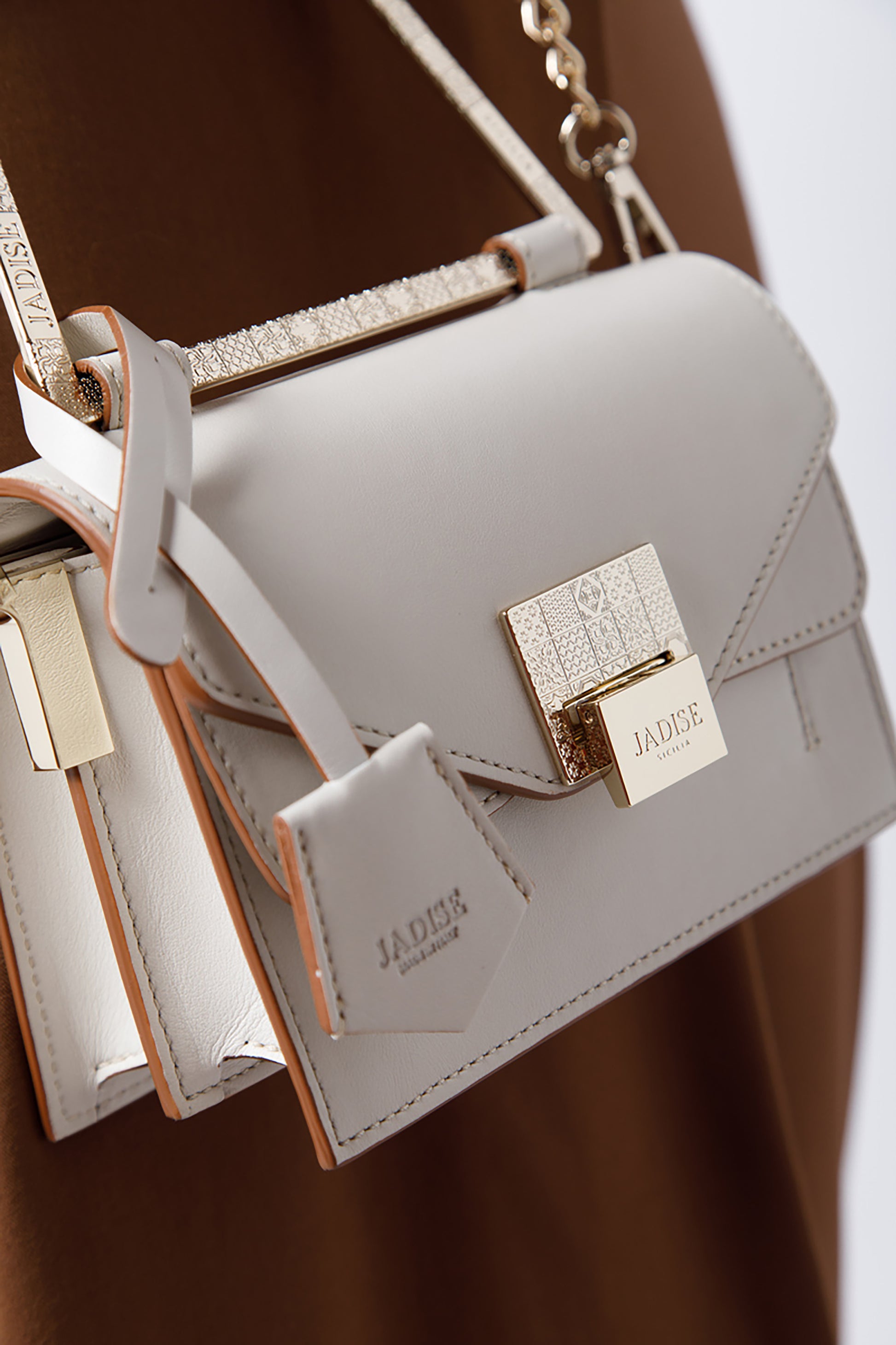 J081158 is a top handle bag made of leather crafted by Jadise. It features a detachable strap.