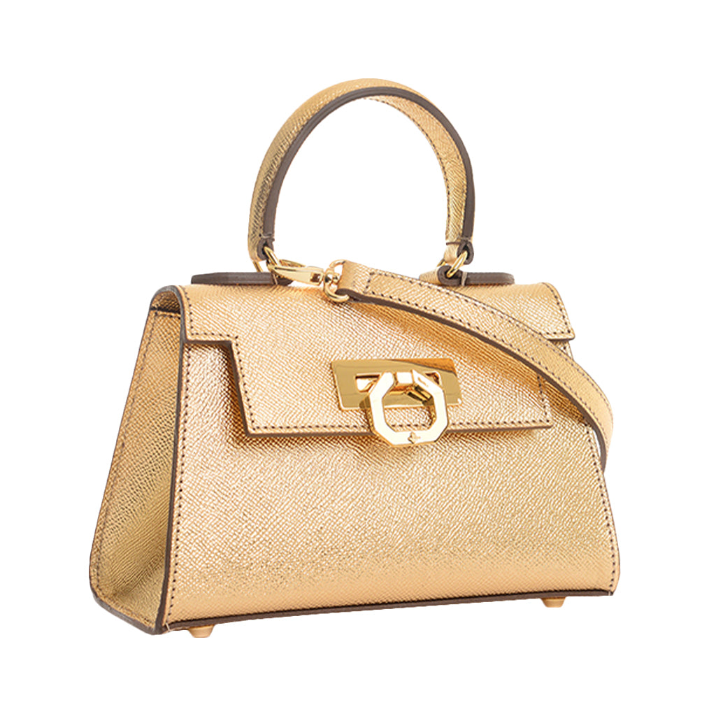- Golden-toned metal hardware