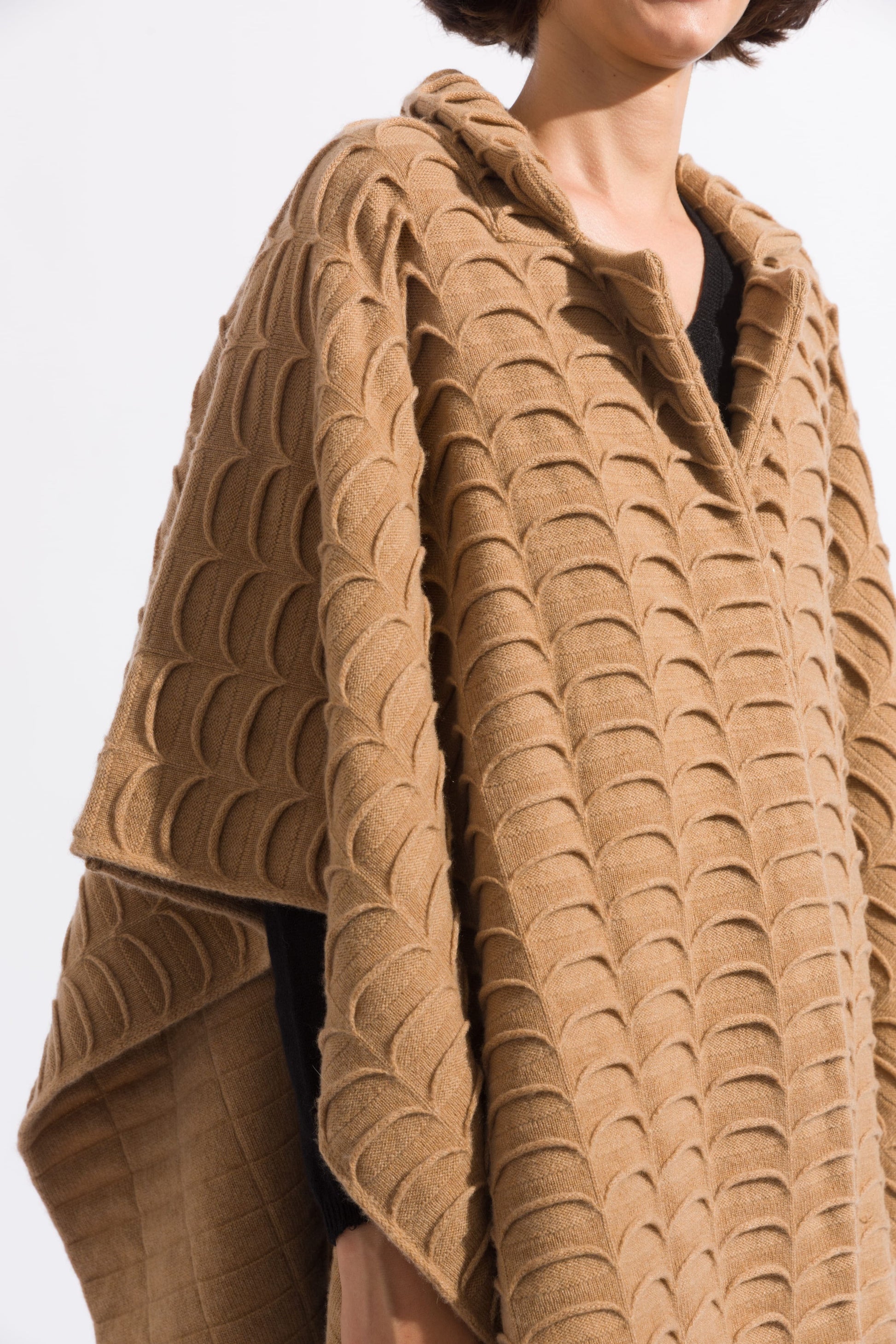 Lucca is a poncho crafted by Curling Collection. Made of quality Cariaggi cashmere, this poncho is just perfect for those chilly days. Simple yet elegant, Lucca features a three-dimensional effect, thanks to a complex process that is carried out directly in the weaving machine. Boasting soft revers, Lucca is designed as alternatives to the outerwear and can easily replace your warmer coats.