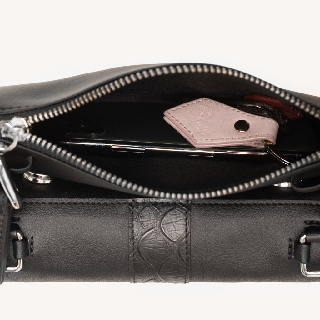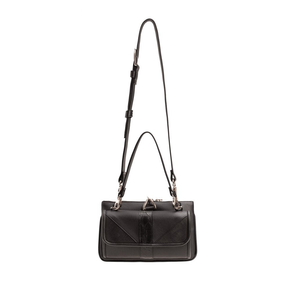 Monik is a mini vegan bag crafted by Adelaide C. Ecoage. Made of vegan leather and printed cork, Monik is a multifunctional piece that presents a handle with a double snap hook as well as detachable shoulder strap for hands-free convenience. You can even wear it as a chic belt bag or clutch if you prefer. The wallet can be detached from the rest of the bag, as the two are held together by magnets. Monik is designed for the woman who desires a fashionable yet functional accessory to accompany her wherever she goes.