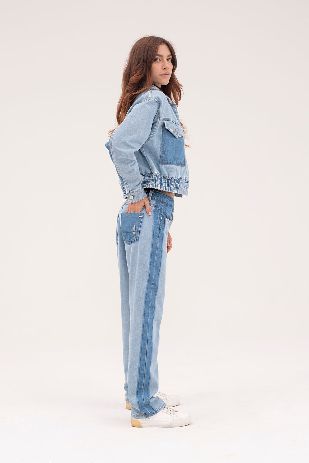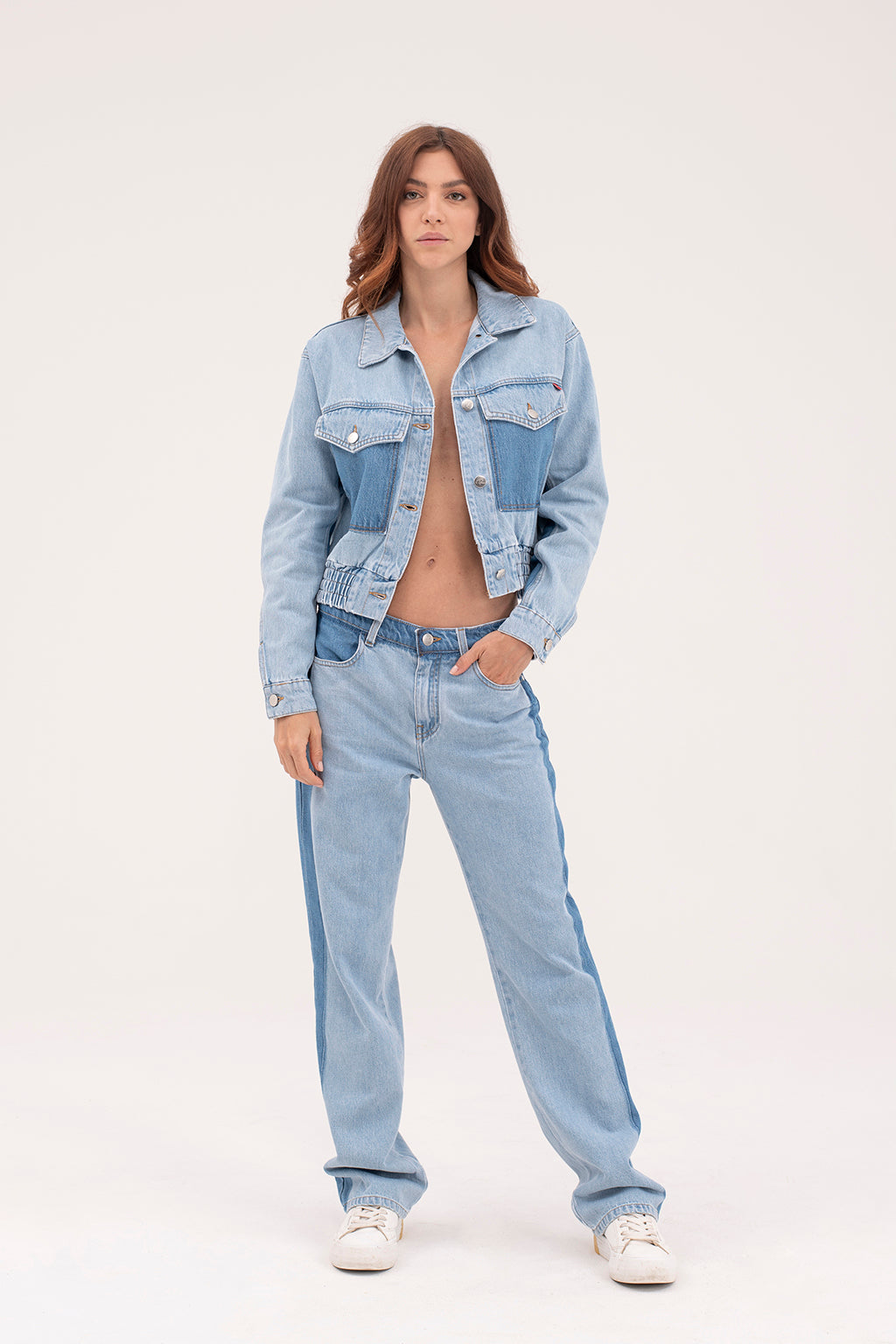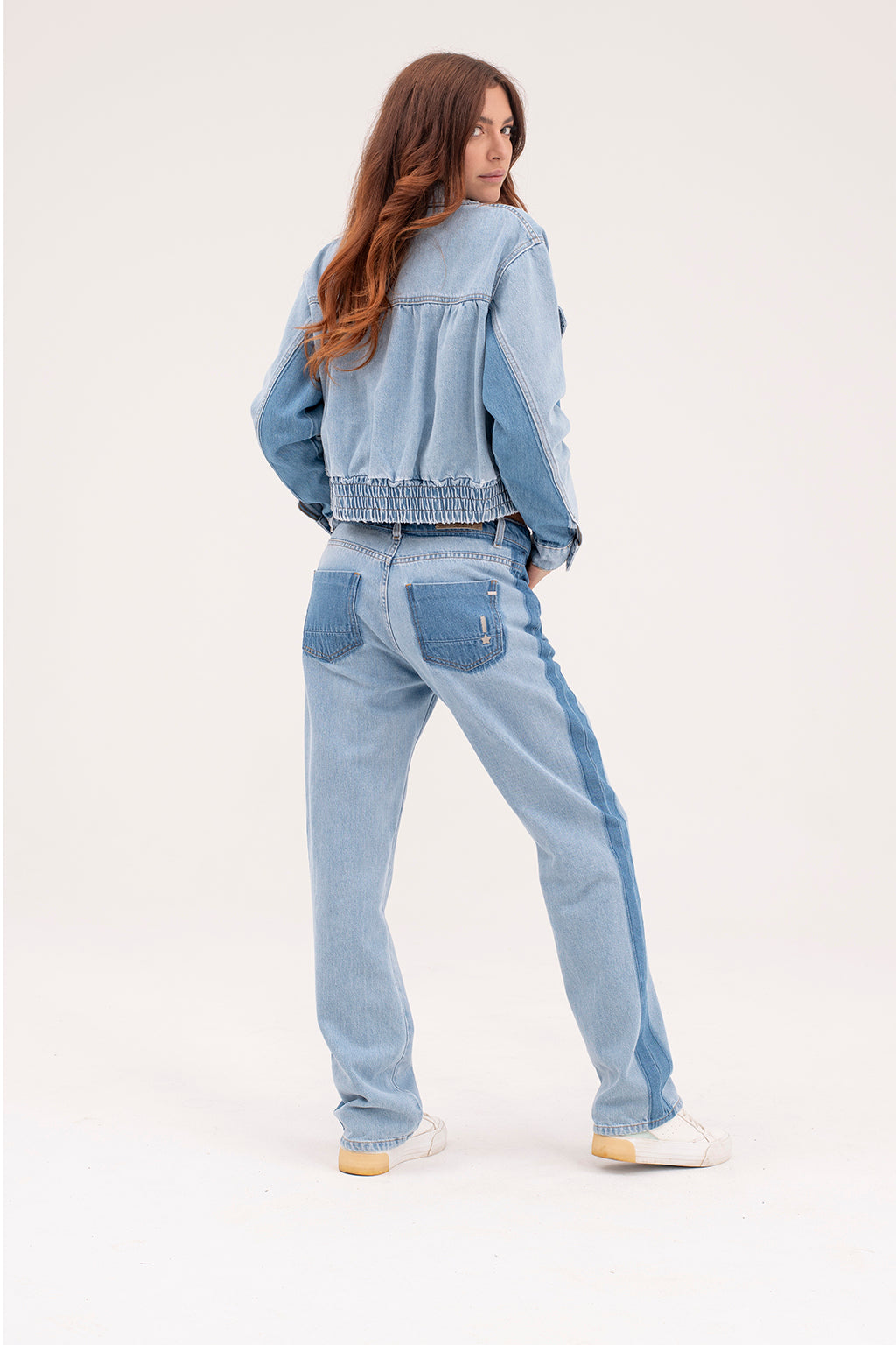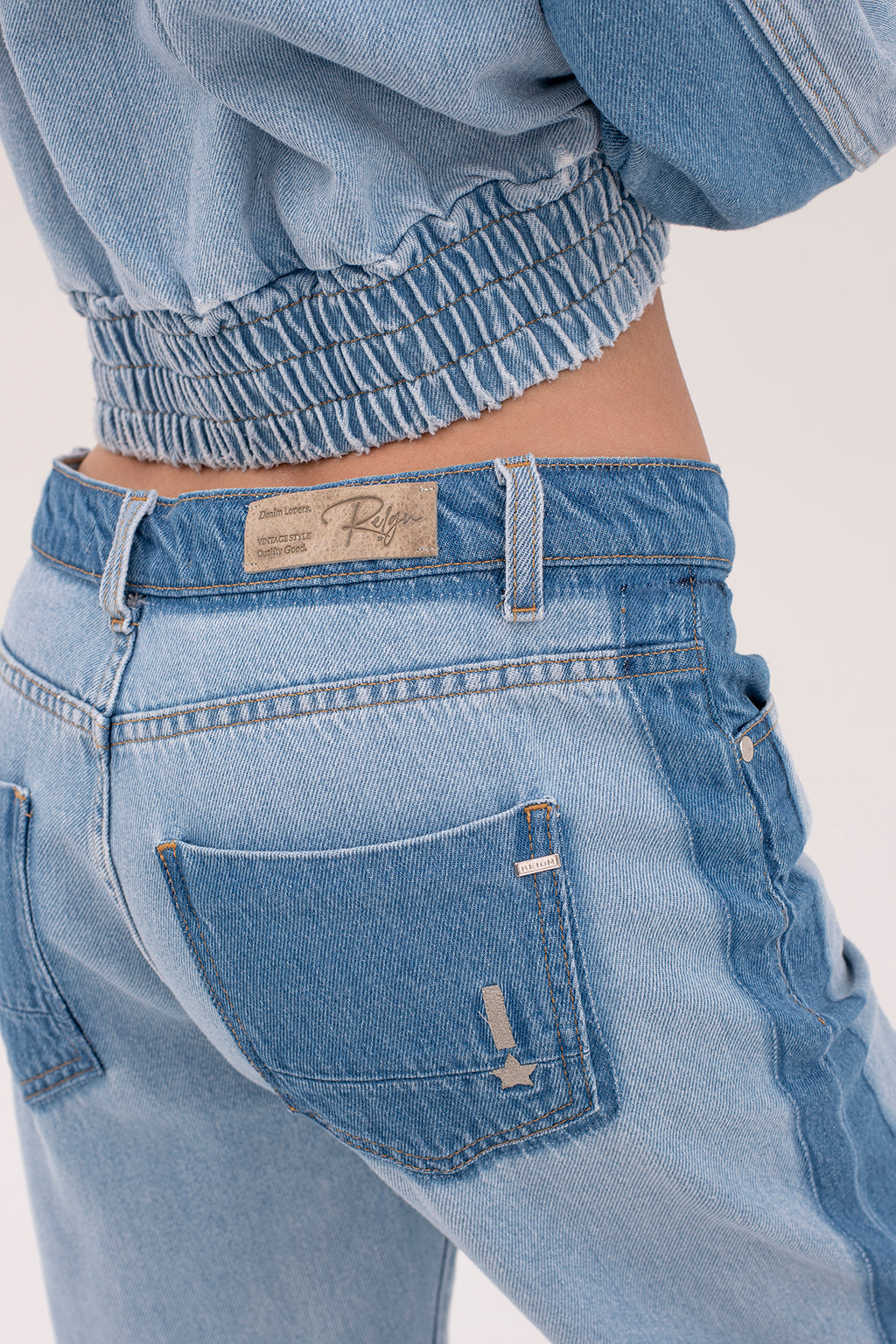 New Alicia Amos is a pair of streight leg and mid-rise jeans.