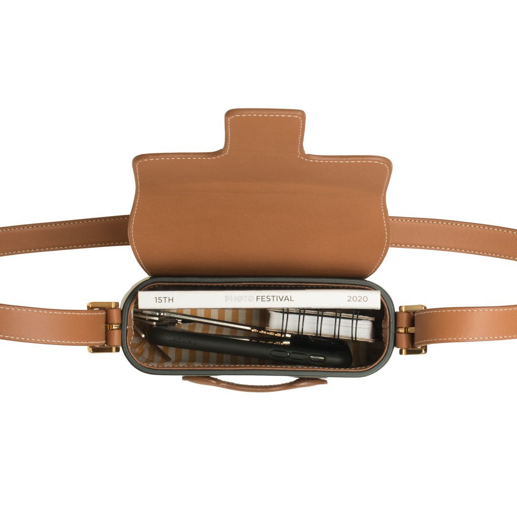 Ninfa is a crossbody bag crafted by C.A.F. Cuoio Artistico Fiorentino. Made of premium calfskin leather, compact, convenient and absolutely chic, it is a wardrobe staple for all seasons. Featuring a structured design that will stand the test of time, Ninfa will refine any outfit you have instantly.