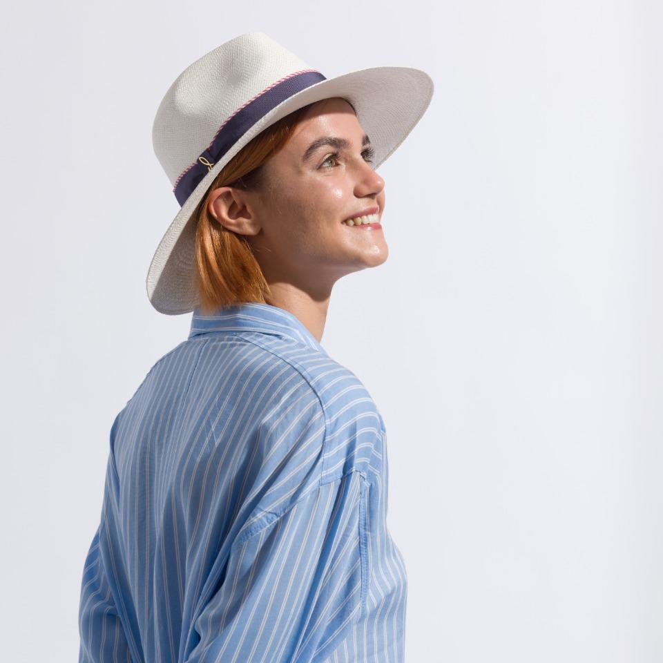 Positano Sun is handcrafted by the historic weaving artisans of Doria 1905 in the Salento area of Apulia. This charming fedora is made of Panama Brisa straw, obtained from the leaves of the Carludovica plant and woven in Ecuador. Positano Sun features a linen belt decorated with the D logo in gold-toned brass, the perfect touch for this flirty and fun accessory.