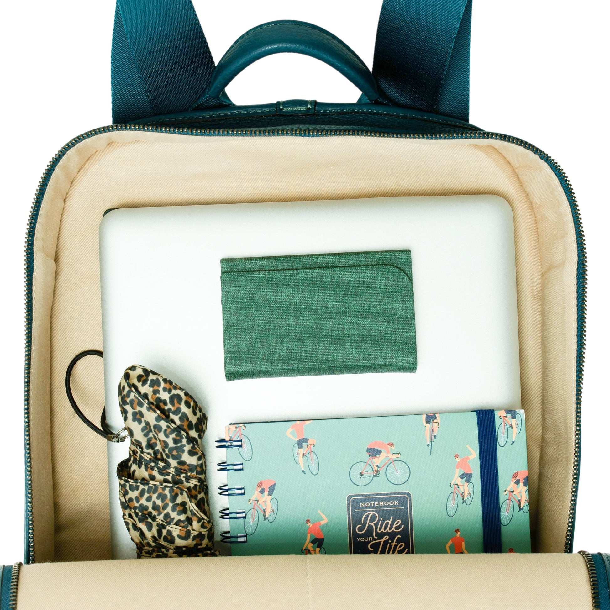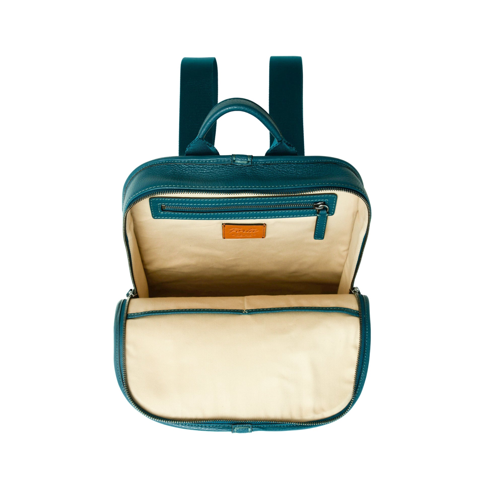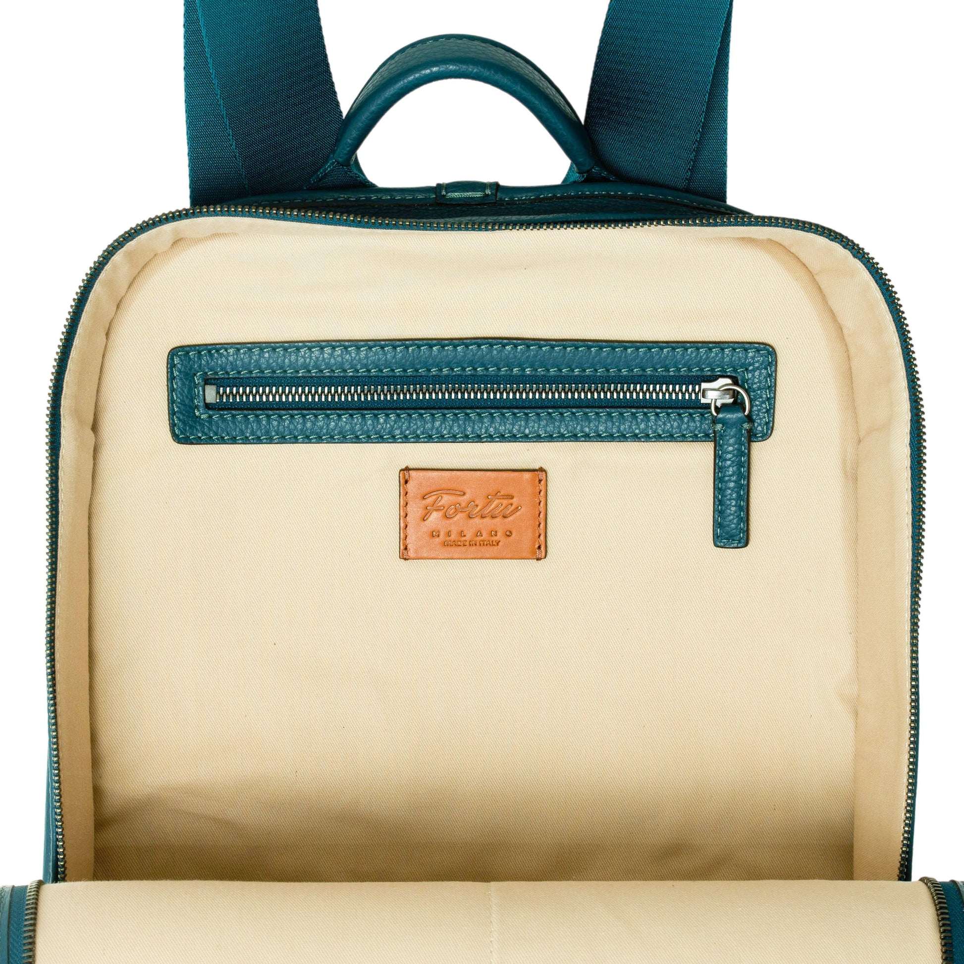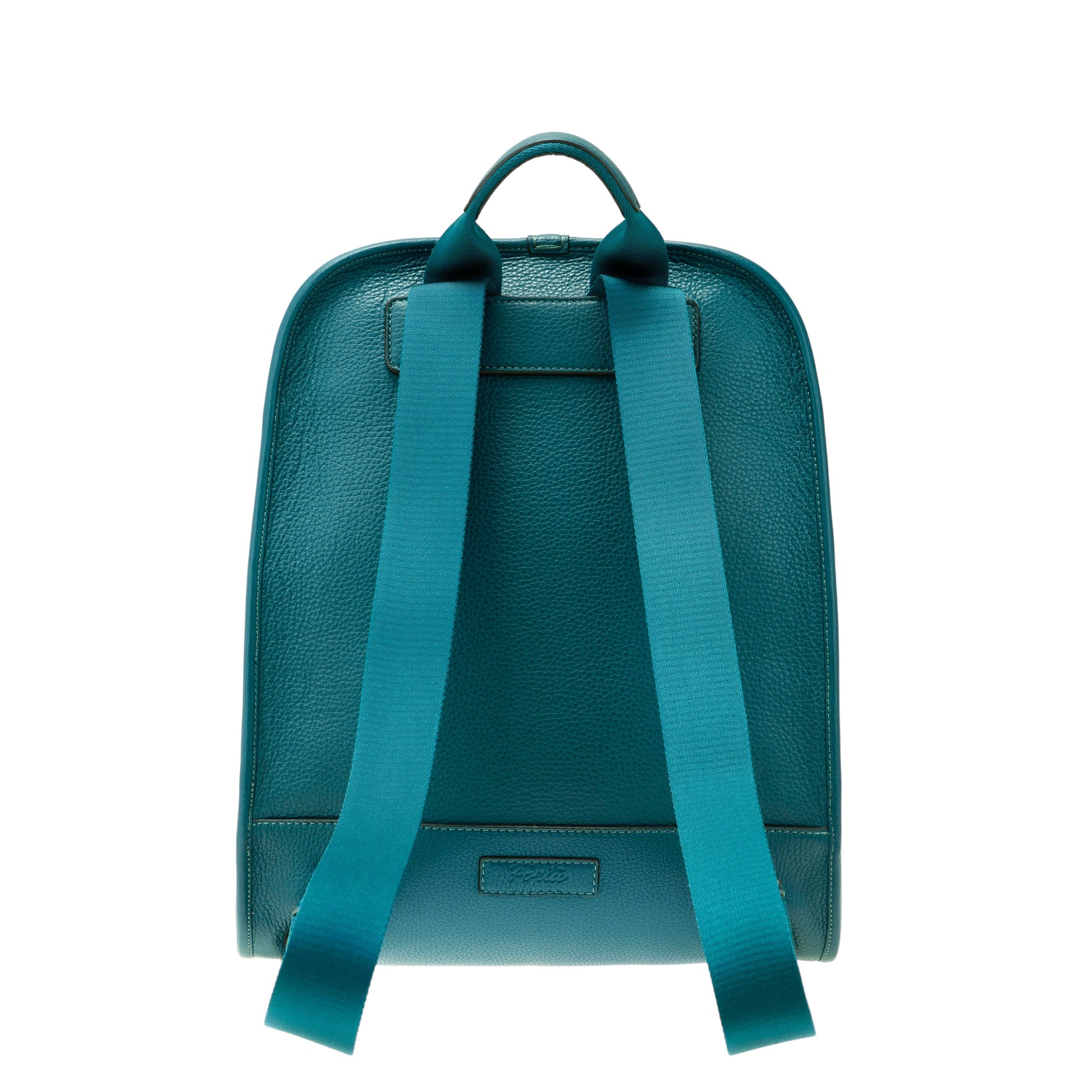 Raphael is a backpack crafted in the workshop of Fortu in Milan. Made of calfskin leather, it features a minimalist design that exudes sophisticated, understated style. In this petroleum colour it takes on a sporty feel that makes it perfect for everyday wear and carrying your laptop and personal items with you, both when travelling and going to the office and around town. - 100% Made in Italy