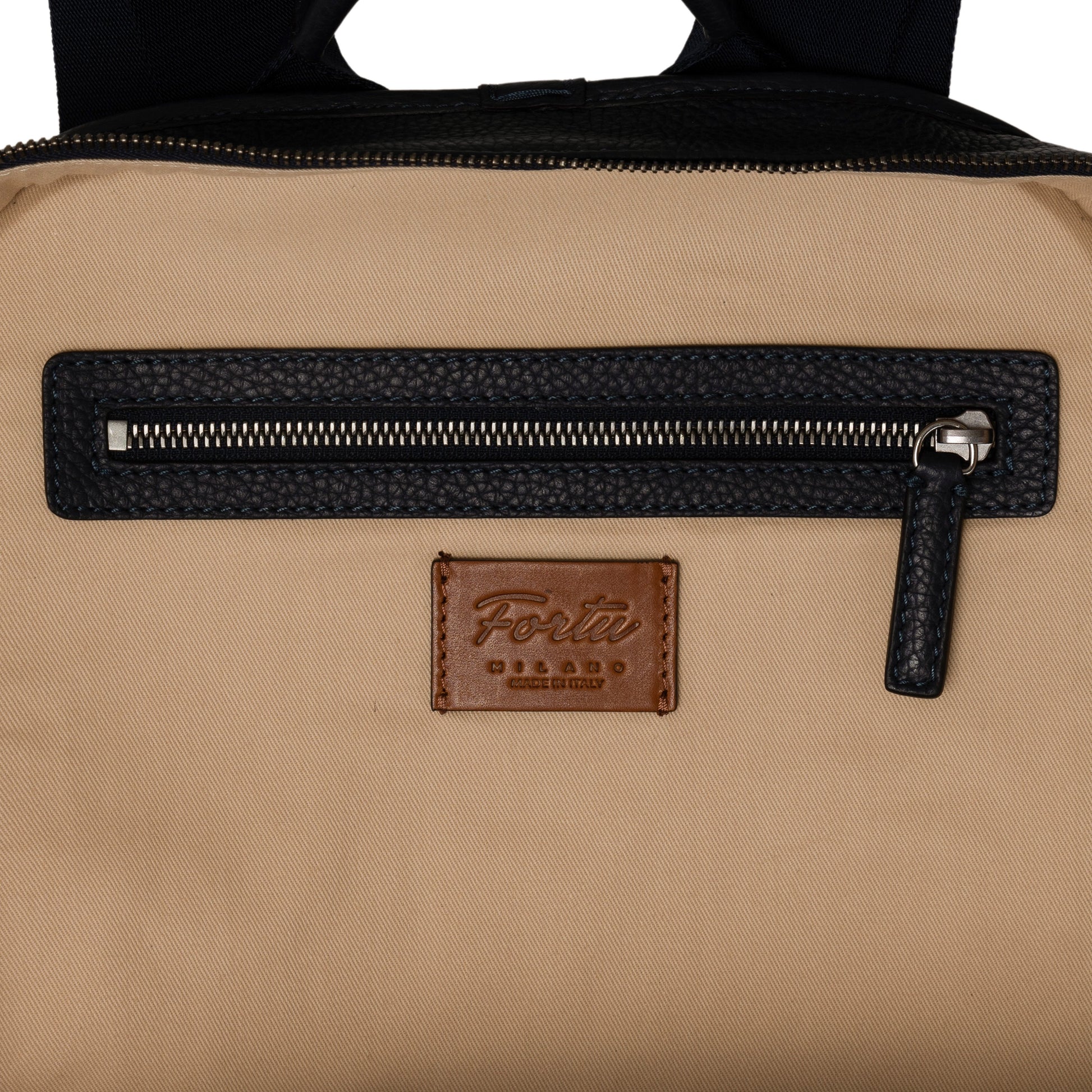 Raphael is a backpack crafted in the workshop of Fortu in Milan. Made of calfskin leather, it features a minimalist design that exudes sophisticated, understated style. In this navy colour it takes on a sporty feel that makes it perfect for everyday wear and carrying your laptop and personal items with you, both when travelling and going to the office and around town. - 100% Made in Italy