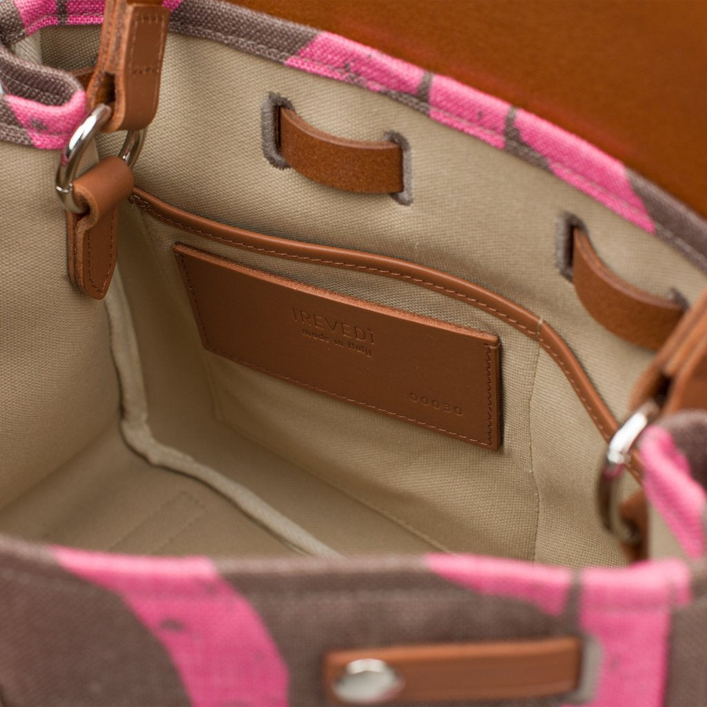 Ray is a crossbody bag crafted by the talented artisans of Irevedì in Tuscany. Made of linen with vachetta leather details, this bag is an explosion of bright pop that makes it contemporary-looking. With a roomy interior and two slip pockets on the inside, it can fit all of your things. Ray is a truly unique accessory and must-have for every girl's wardrobe!
