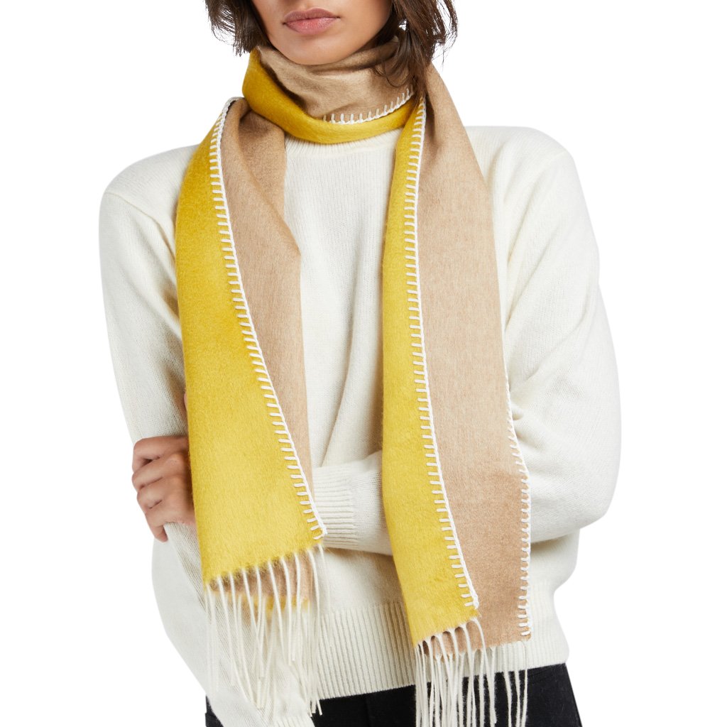 Romana is a scarf woven by Doria & Dojola in Biella. This two-tone scarf is made from a luxurious and dense Cashmere Silk blend, featuring vivid colours on either side. Great as a gift and wonderful teamed with some luxurious cashmere gloves or hat.