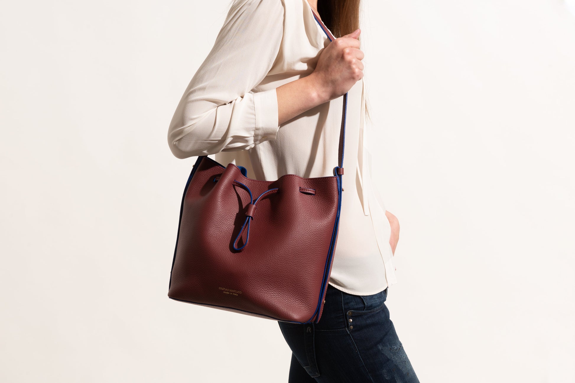 Sandra B is a bucket bag crafted by the expert artisans of Cristian Marcucci in Bagno a Ripoli, Tuscany. Made of luxurious calfskin leather, it is a minimal bag, yet stylish enough to stand out from the crowd. Featuring a roomy interior and a inner pouch to safely store your essentials, Sandra B is perfect for work and play.