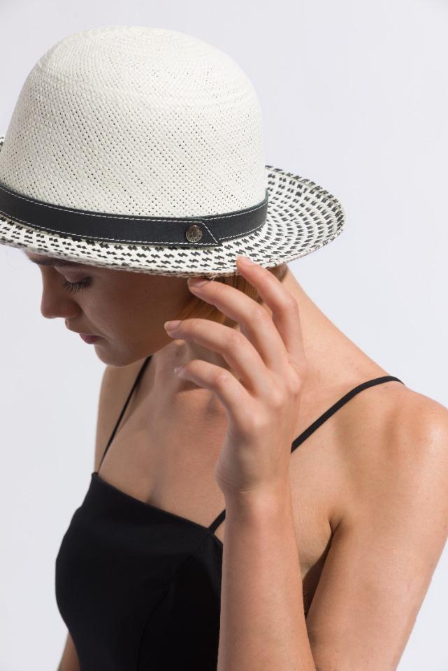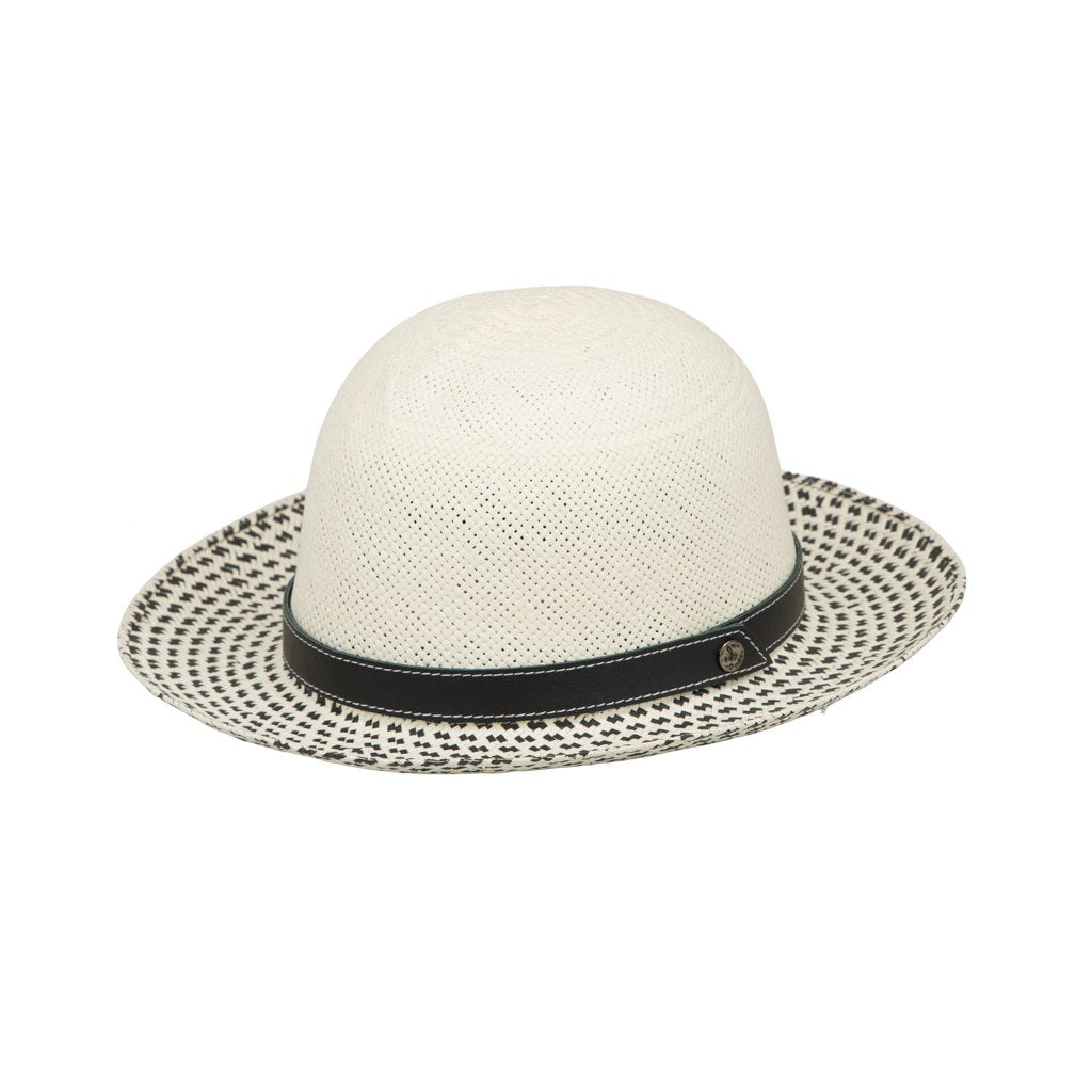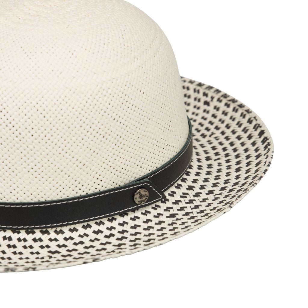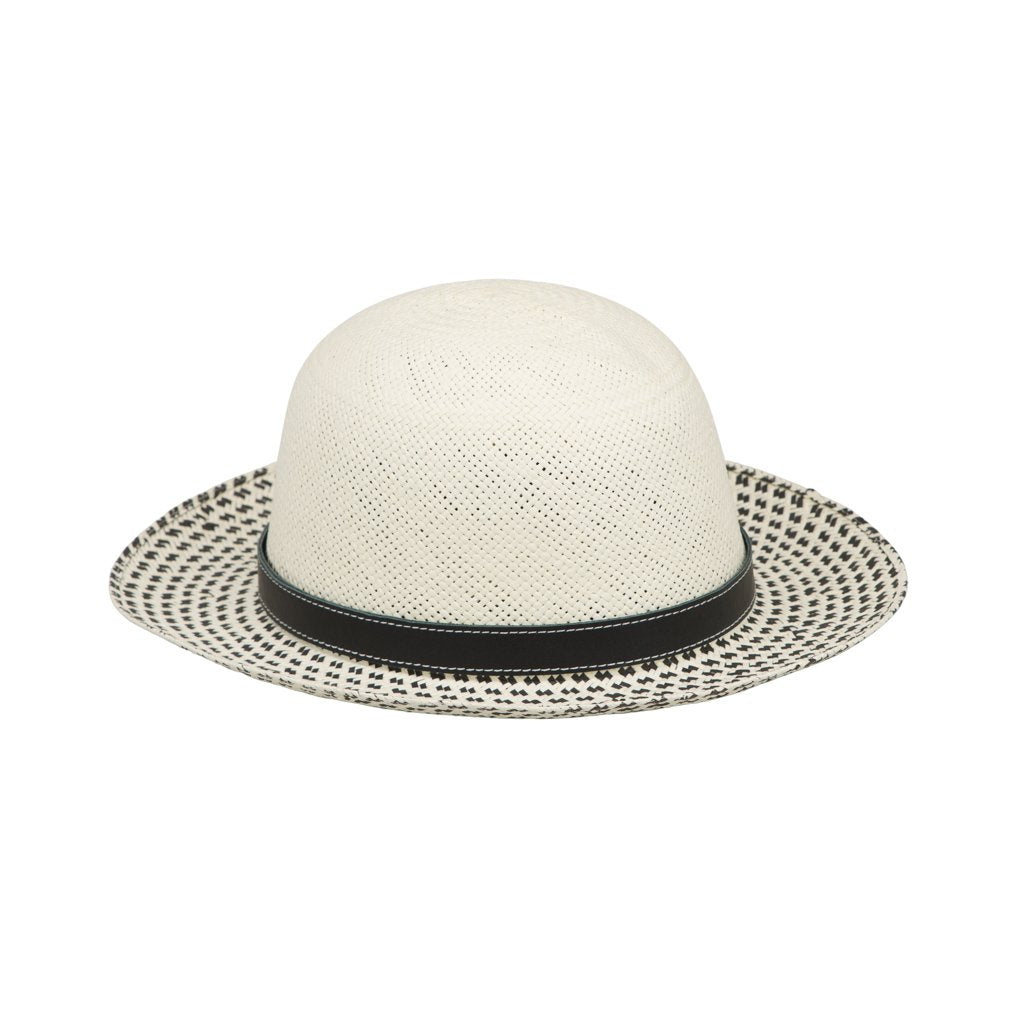 Solano is handcrafted by the historic weaving artisans of Doria 1905 in the Salento area of Apulia. This woven hat is made of a cellulose fiber called papier, obtained from recycling paper. Solano boasts night blue details and a leather belt, perfect for an easygoing yet elegant look. The belt is also adorned with a chic metal pin engraved with the brand logo.