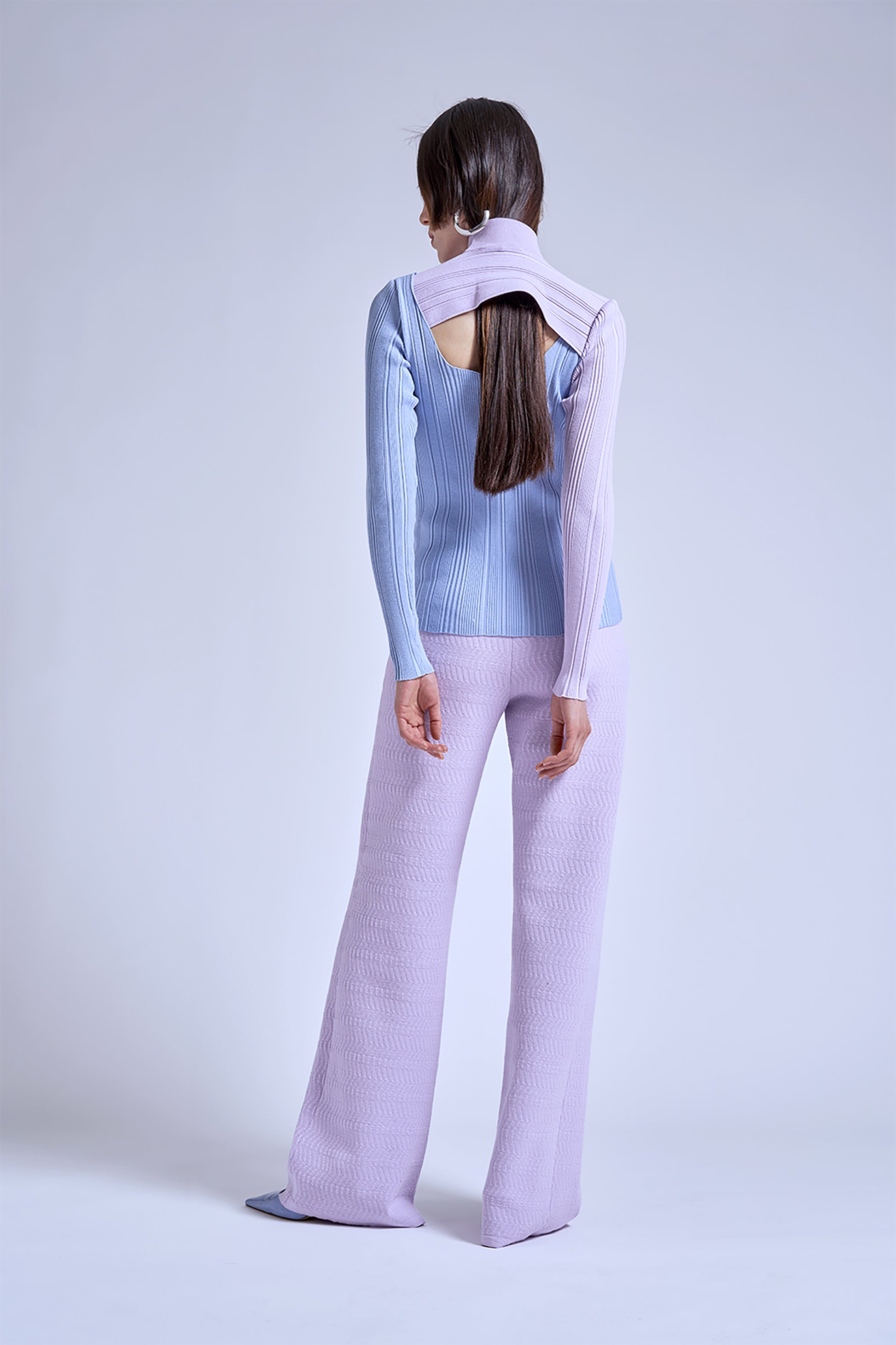T0512 is a ribbed shirt made of viscose and polyester crafted by TESEI.