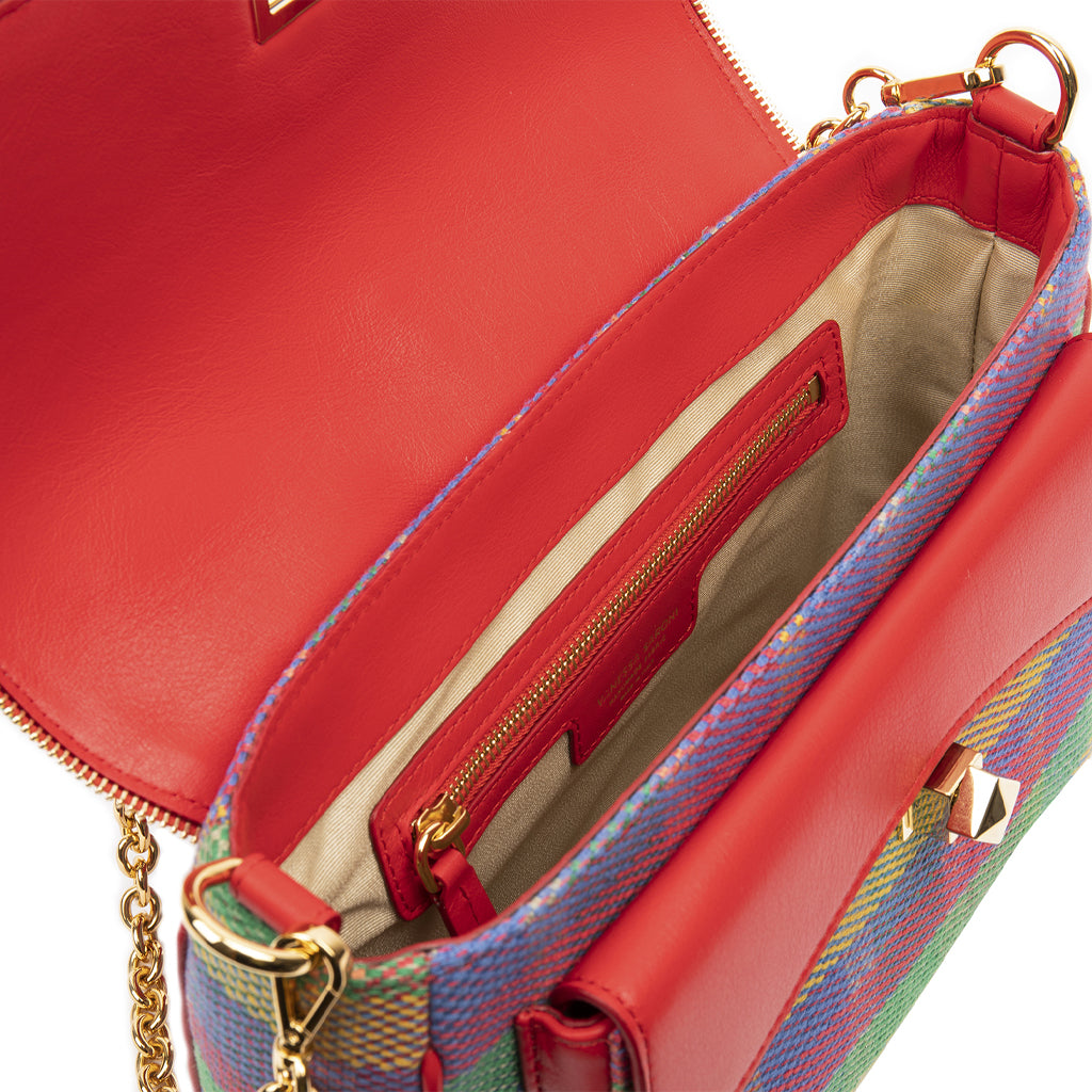 Tartan V is a crossbody bag made of cotton and leather crafted by Vanessa Saroni.
