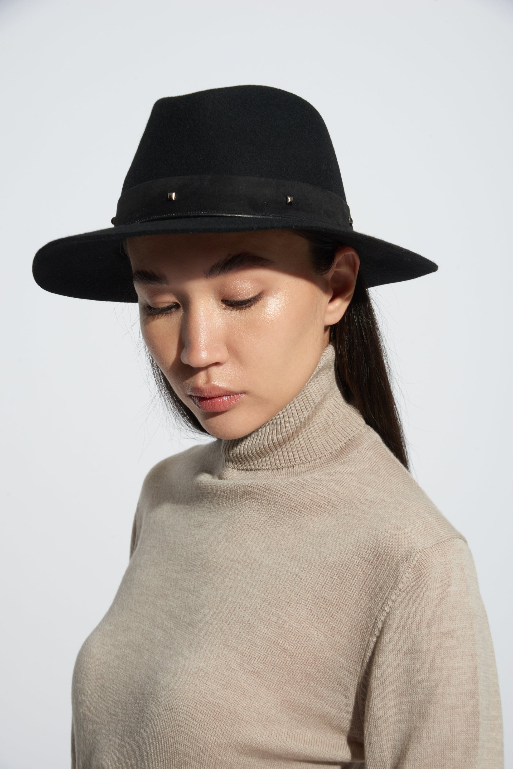 Tobar is handcrafted by the historic weaving artisans of Doria 1905 in the Salento area of Apulia. Made of waterproof wool, this posh hat boasts an imitation leather belt adorned with studs. With the brand's iconic lining, Tobar is both comfortable and super classy.