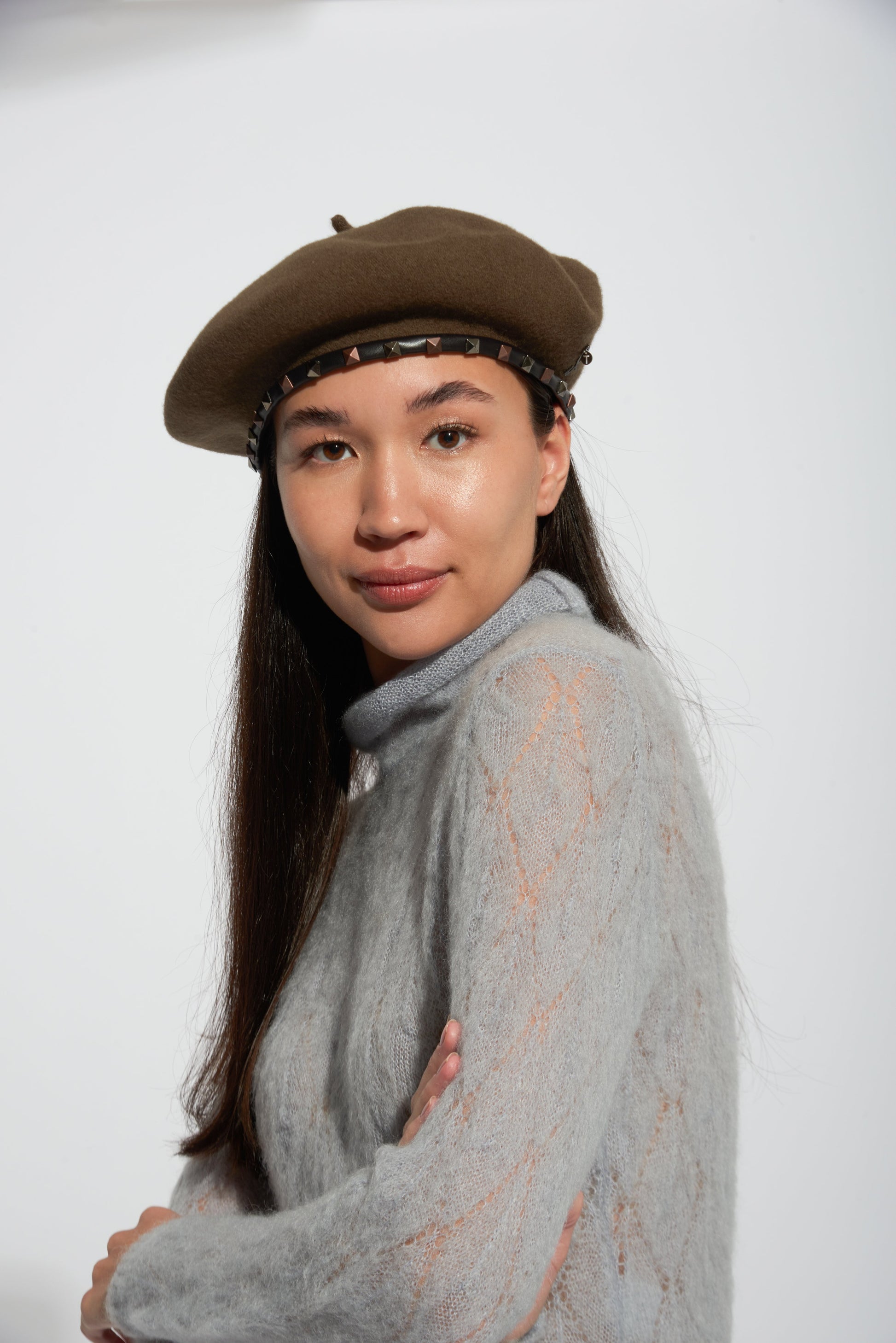 Turenne is handcrafted by the historic weaving artisans of Doria 1905 in the Salento area of Apulia. This wool felt beret features leather piping decorated with multicolor studs. For a posh accessory with a touch of punk rock, Turenne is the perfect choice.