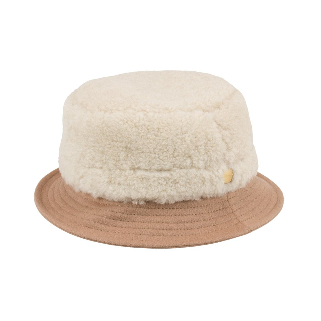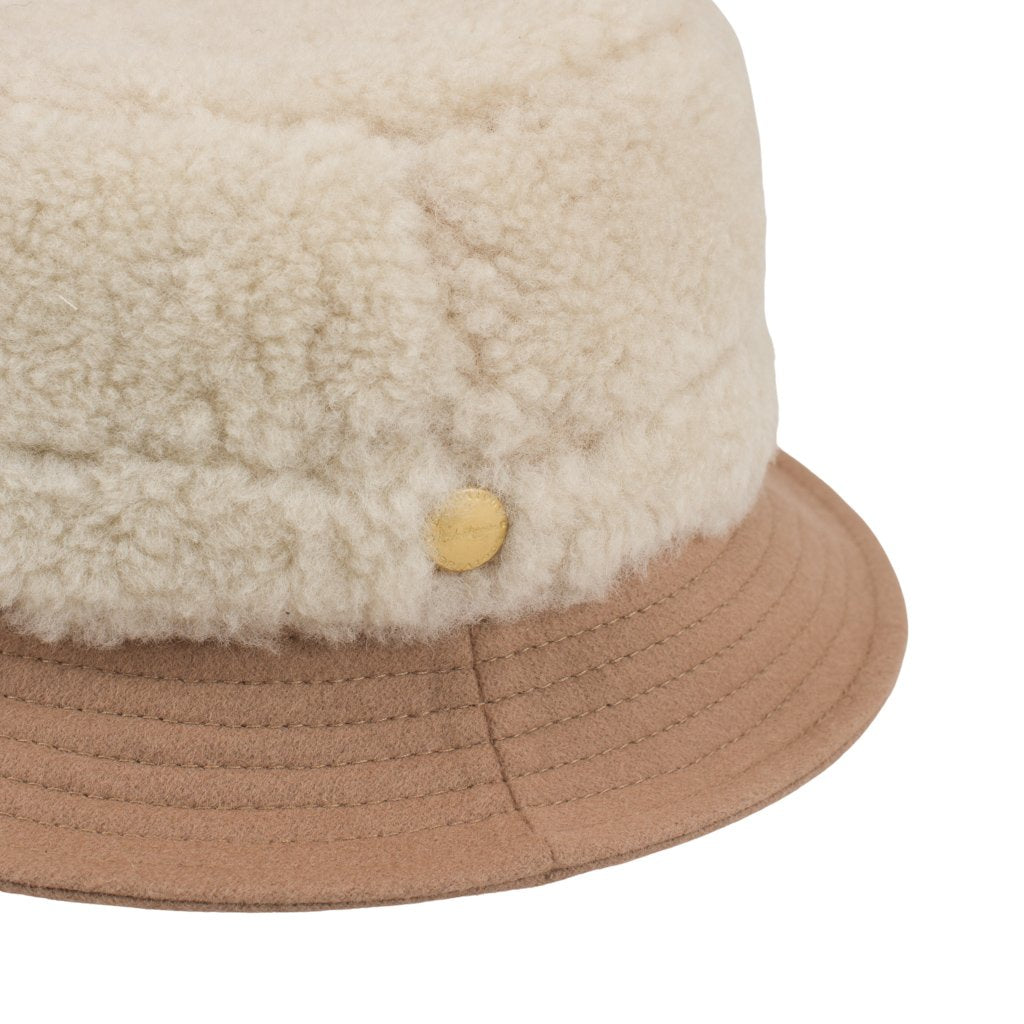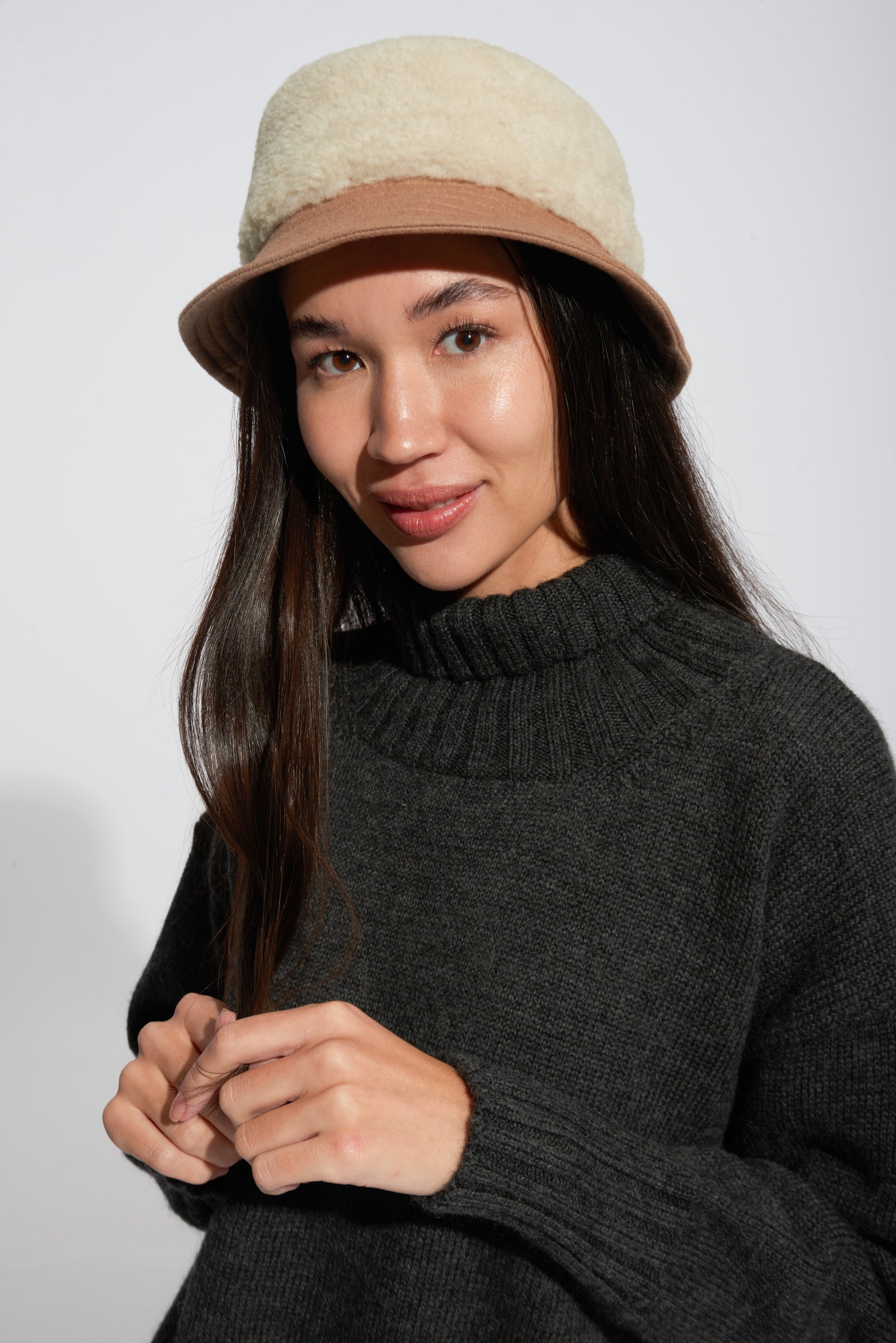 Vadim is handcrafted by the historic weaving artisans of Doria 1905 in the Salento area of Apulia. Vadim is a reversible bucket hat made of both sheepskin and leather, providing a fun and chic contrast. On one side is a neutral cream color while the other is a gorgeous shearling cognac, fabulous options for your cold weather looks.