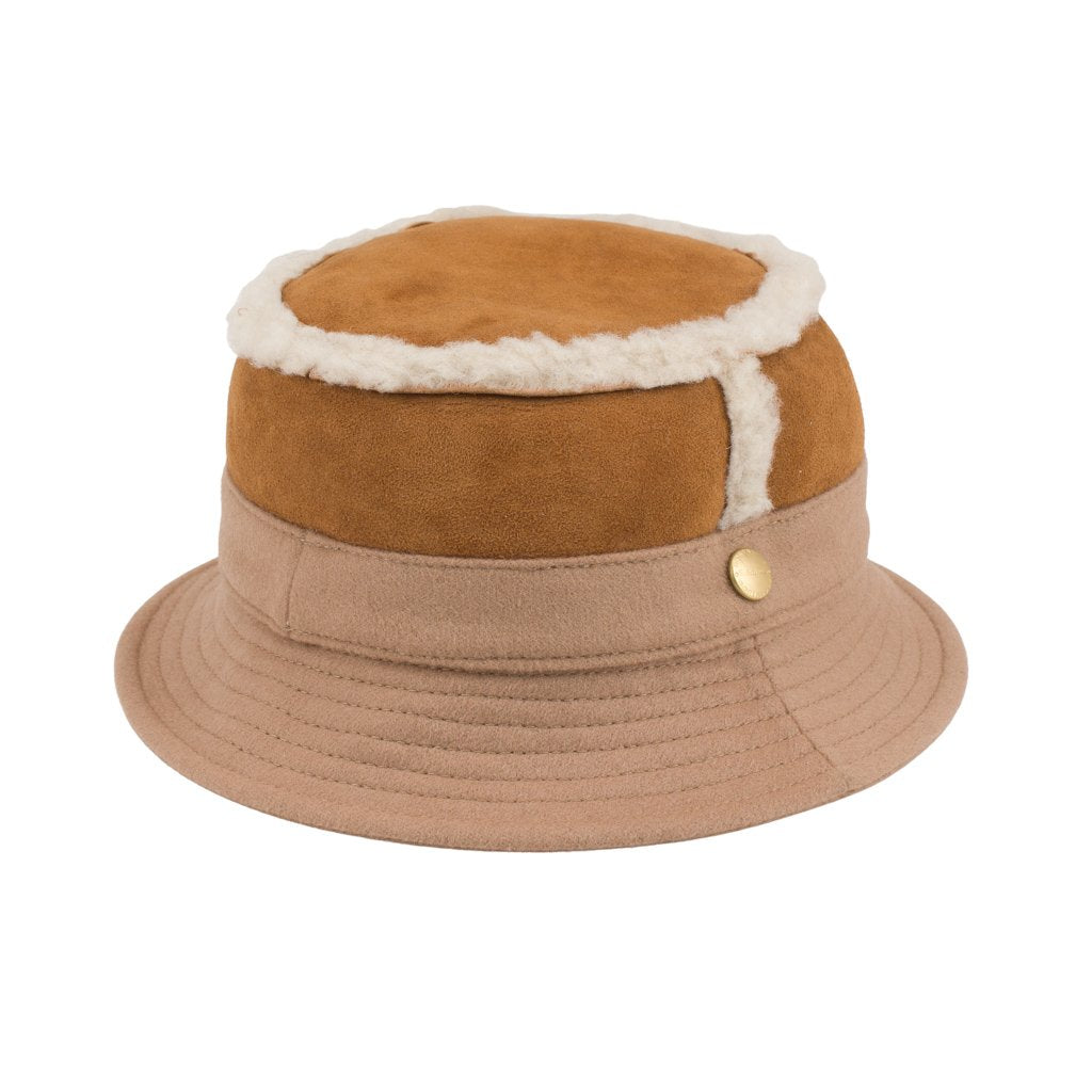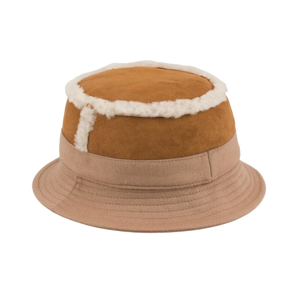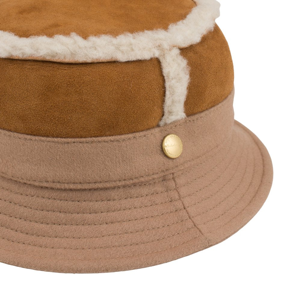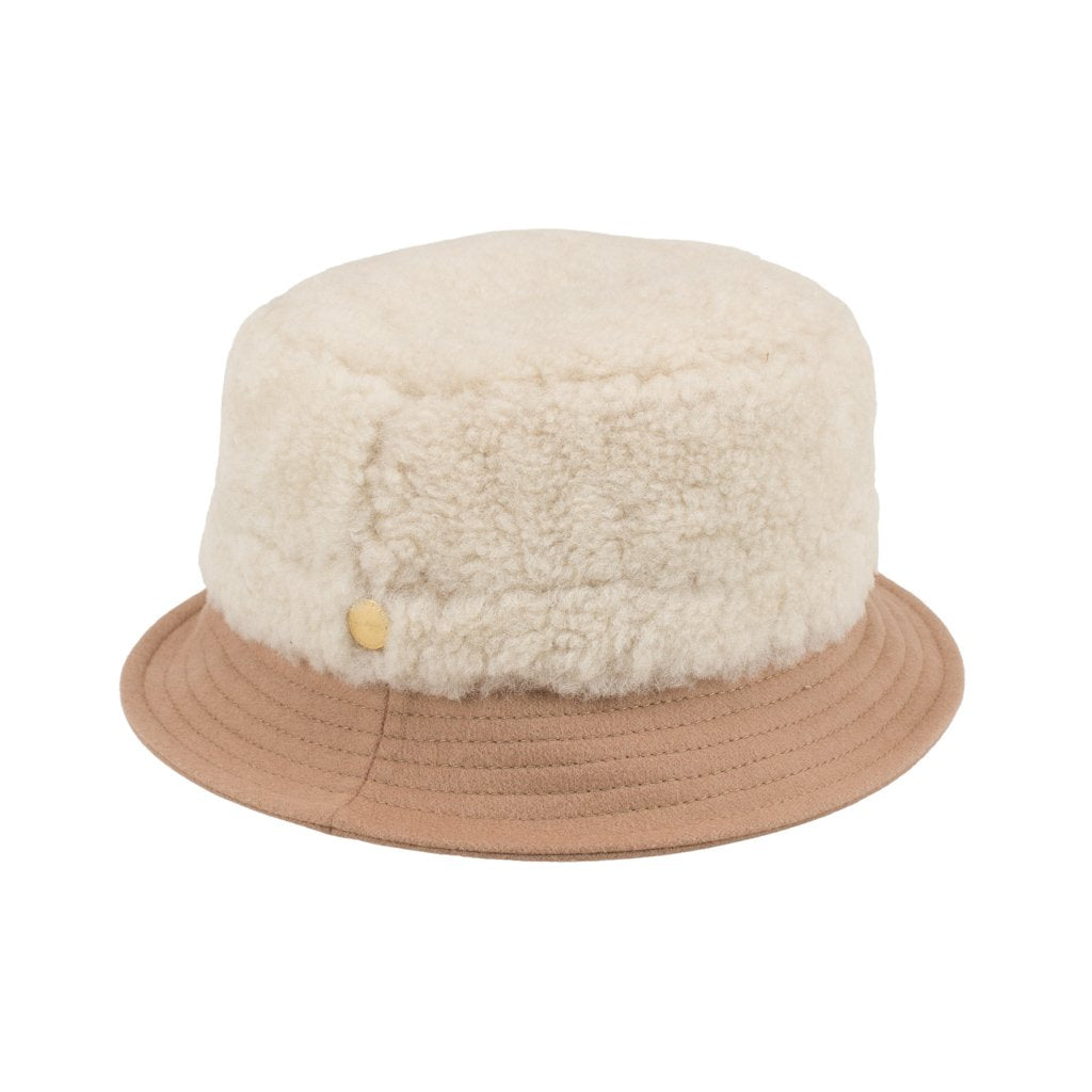 Vadim is handcrafted by the historic weaving artisans of Doria 1905 in the Salento area of Apulia. Vadim is a reversible bucket hat made of both sheepskin and leather, providing a fun and chic contrast. On one side is a neutral cream color while the other is a gorgeous shearling cognac, fabulous options for your cold weather looks.