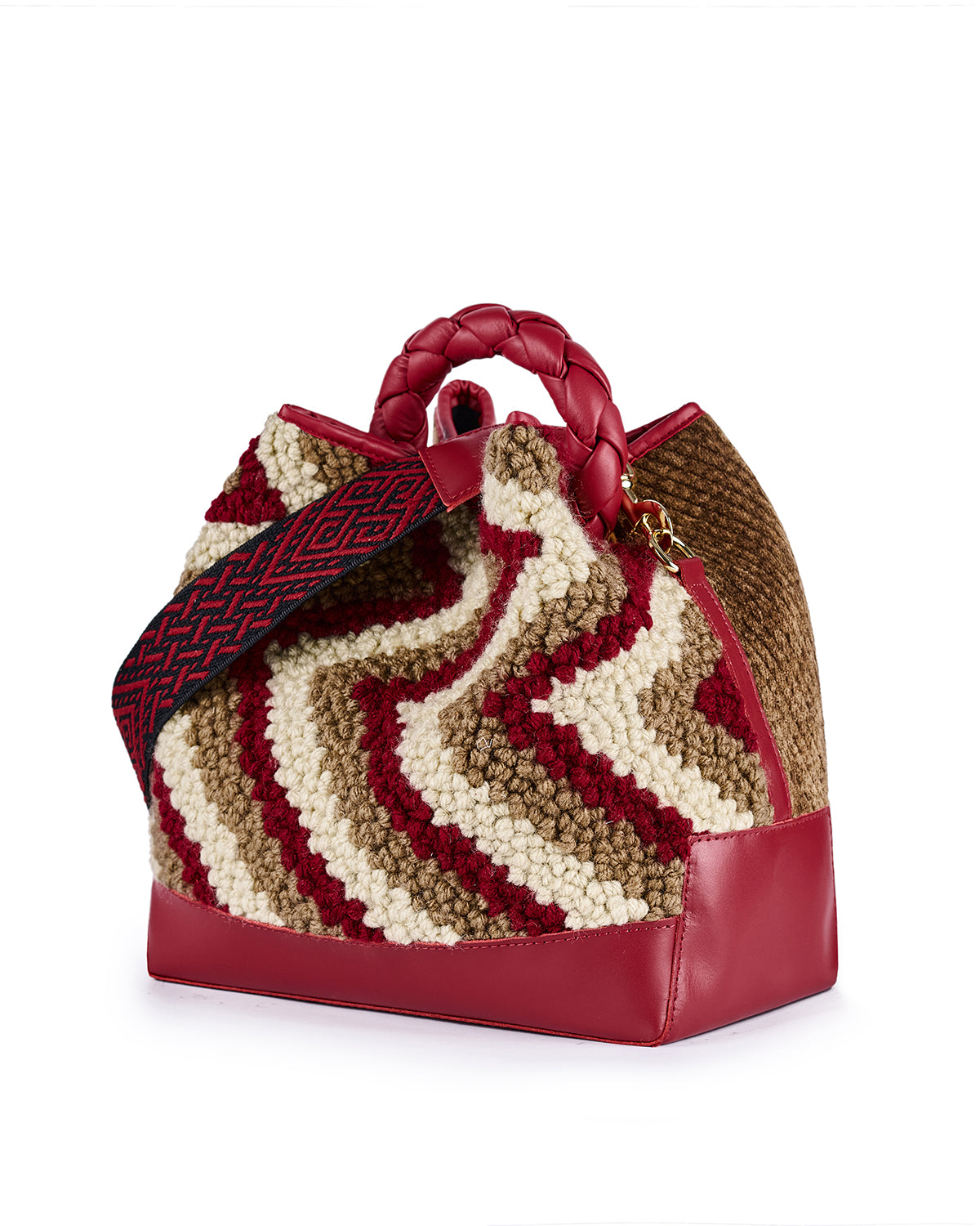 Amber Trim is a bucket bag composed of cotton and Leather made by ViaMailBag in Empoli, Tuscany. The bag has leather details, braided handle and fancy shoulder strap.- Made in Italy
